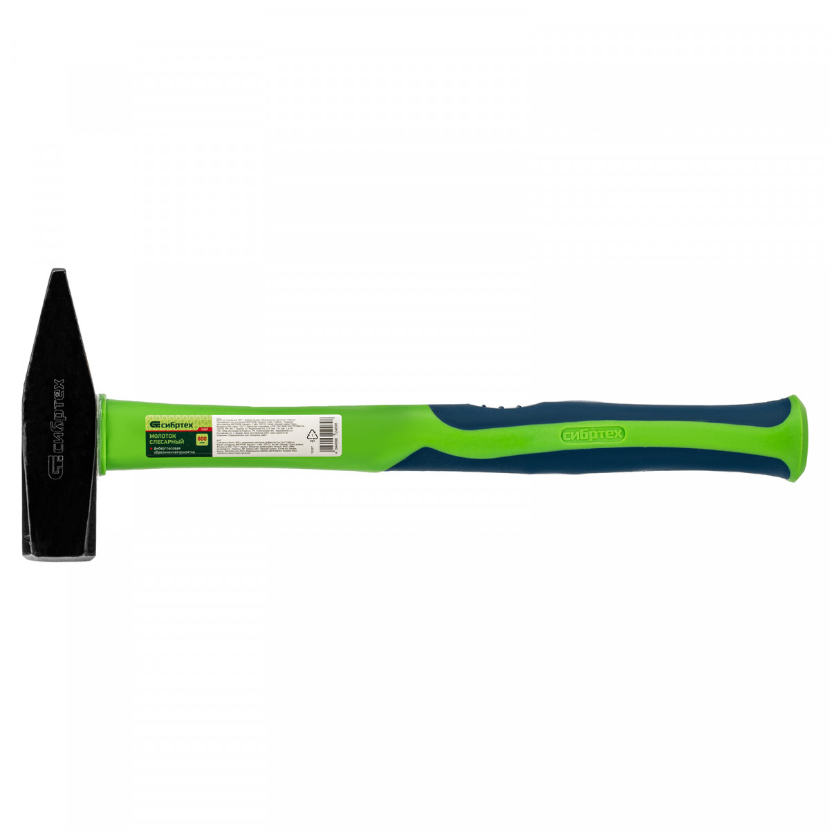 Молоток слесарный, 800 г, фибергласовая обрезиненная рукоятка Сибртех