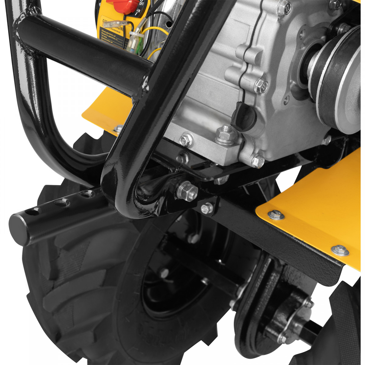 • Усиленная рама — ключевые узлы надежно защищены, мотоблок удобно транспортировать.