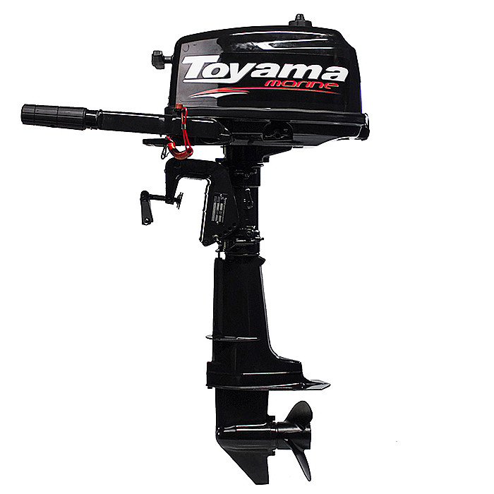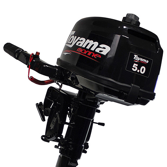 Подвесной 2-х тактный бензиновый лодочный мотор Toyama T5 BMS имеет 5 лошадиных сил и систему водяного охлаждения двигателя, что позволяет сохранять высокую производительность на протяжении всего времени эксплуатации. Стартер двигателя выполнен из надежного алюминиевого сплава с большим сроком службы. Мотор Toyama T5 BMS имеет встроенный топливный бак, ручной стартер, а также рулевое управление с возможностью поворота на 360º, которое не требует переключения передач. Рычаг дросселя, воздушная заслонка, стартер и выключатель двигателя размещены достаточно удобно, что создает уверенный запуск. Легкость управления и маневренность модели обеспечивает длинная рукоятка рулевого управления, а также возможности регулировки усилия вращения и угла дифферента мотора. Мотор идеально подходит для надувных лодок, рыболовных лодок, парусных шлюпок и маленьких яхт.