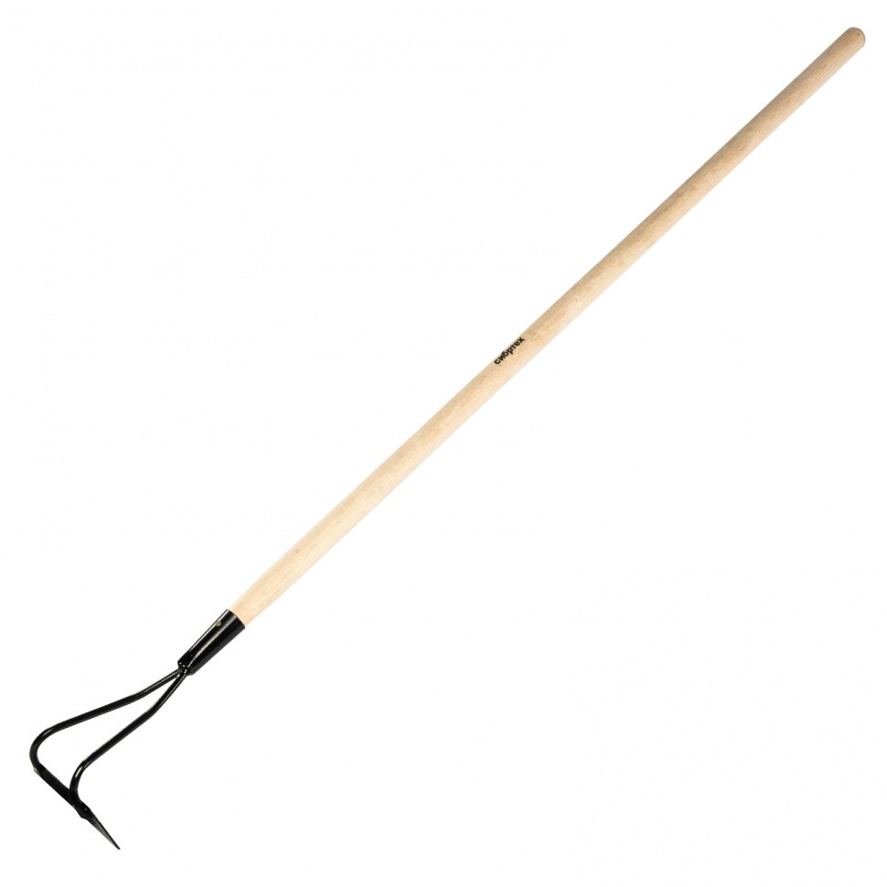 Износостойкая стальная рабочая часть и деревянный черенок обеспечивают долгий срок службы мотыги.