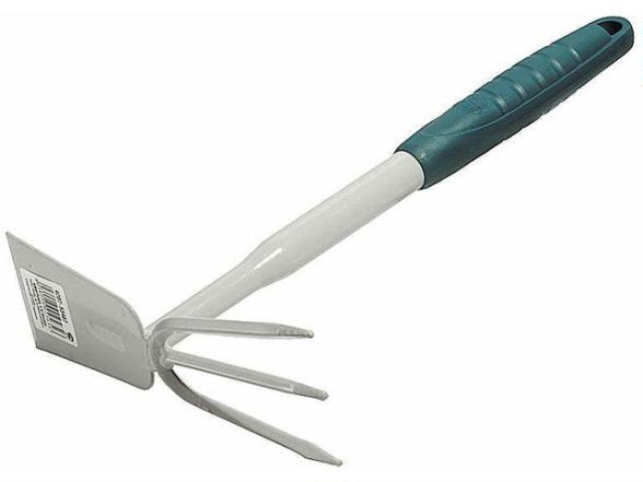 Садовая мотыжка RACO 4207-53487 применяется для посадки и ухода за садовыми и комнатными растениями. Рабочая часть - рыхлитель с тремя зубцами с одной стороны и двухстороннее лезвие - с другой. Мотыжка оснащена ударопрочной рукояткой из специального материала и рабочей частью из высококачественной стали, покрытой специальной защитной краской для увеличения срока эксплуатации. За счет отверстия на конце рукоятки можно хранить инструмент в подвешенном состоянии.