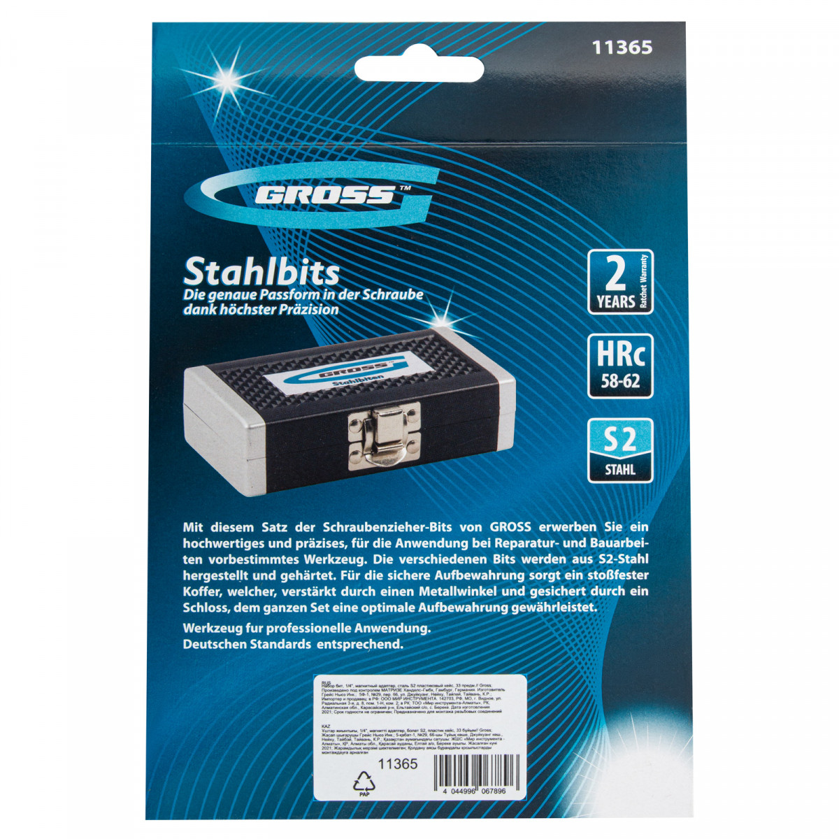 Набор бит, 1/4, магнитный адаптер, сталь S2, пластиковый кейс, 33 предмета Gross