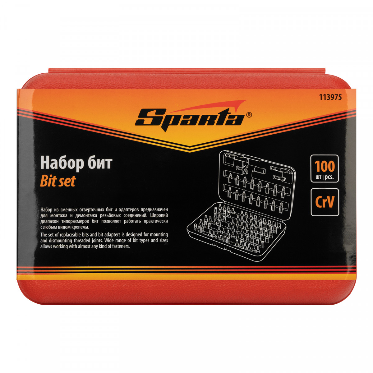 Набор бит, адаптеры для бит, CrV, 100 предметов, пластиковый кейс Sparta