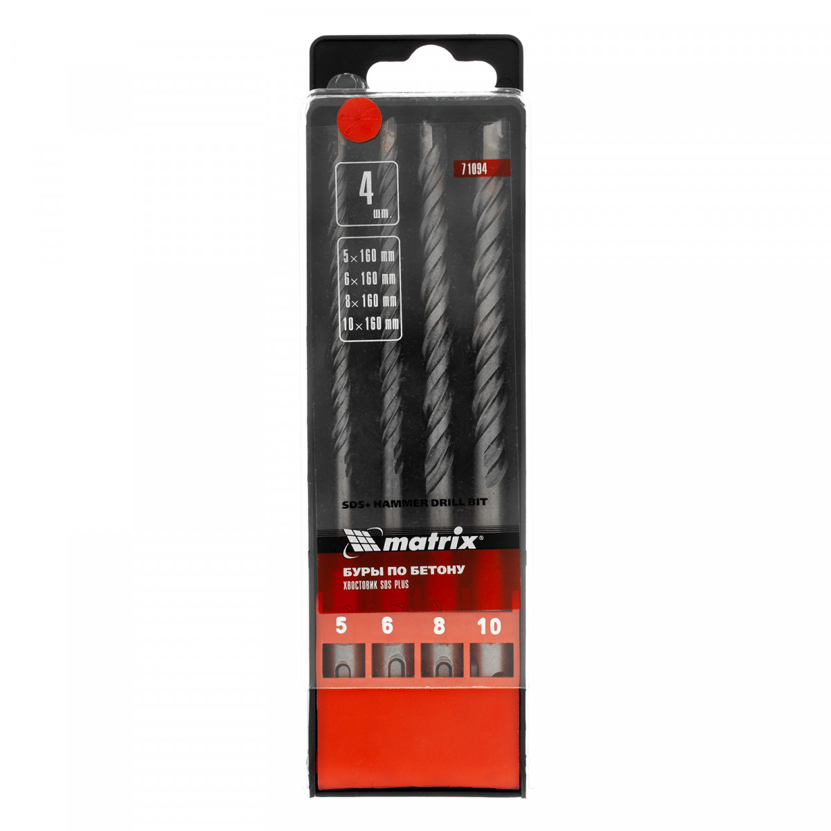 Набор буров по бетону, 5-6-8-10 х 160 мм, 4 шт, в пластиковой коробке, SDS Plus Matrix