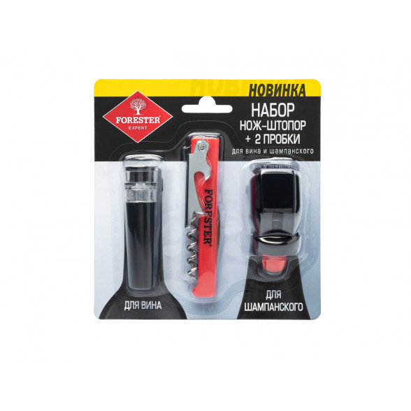 Набор FORESTER нож-штопор+ 2 многоразовые пробки для вина/игристого