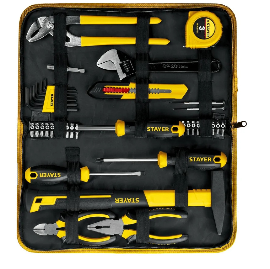 Универсальный набор инструмента для дома STAYER Master-40 40 предм. 22052-H40 представляет собой универсальный набор инструментов для выполнения широкого вида ремонтных работ. Инструмент выполнен из качественной хромованадиевой стали, что обеспечивает высокую прочностью и долгий срок службы. Эргономичные двухкомпонентные рукоятки комфортны при работе. Отвертки и биты имеют намагниченную рабочую часть для удобного удержания крепежа.