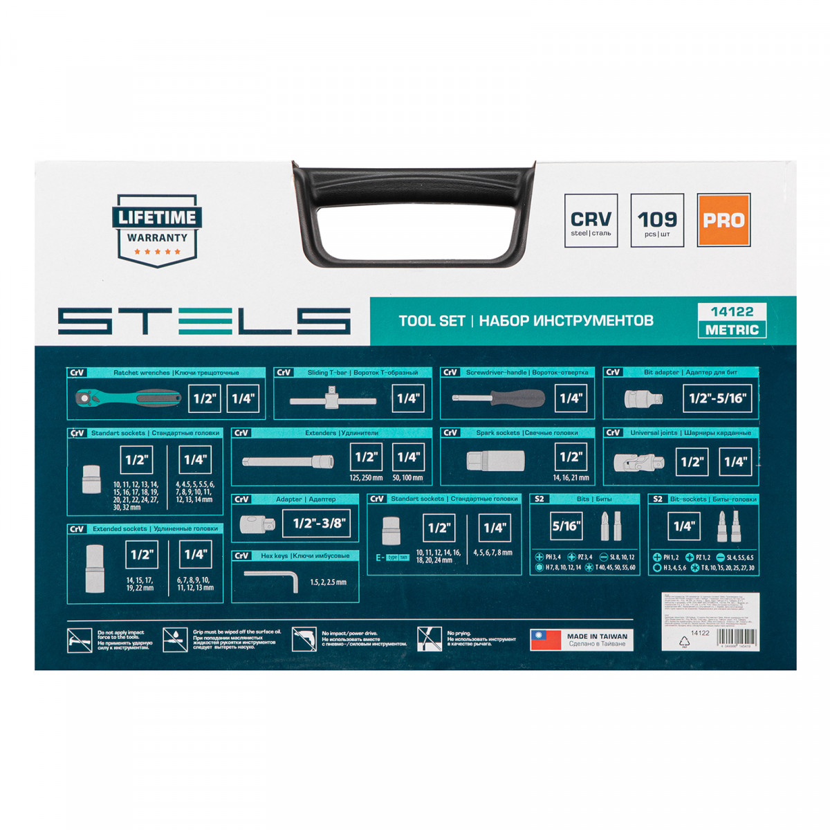 Набор инструментов 1/2", 1/4", CrV, 12 гранные головки, пластиковый кейс, 109 предмета Stels