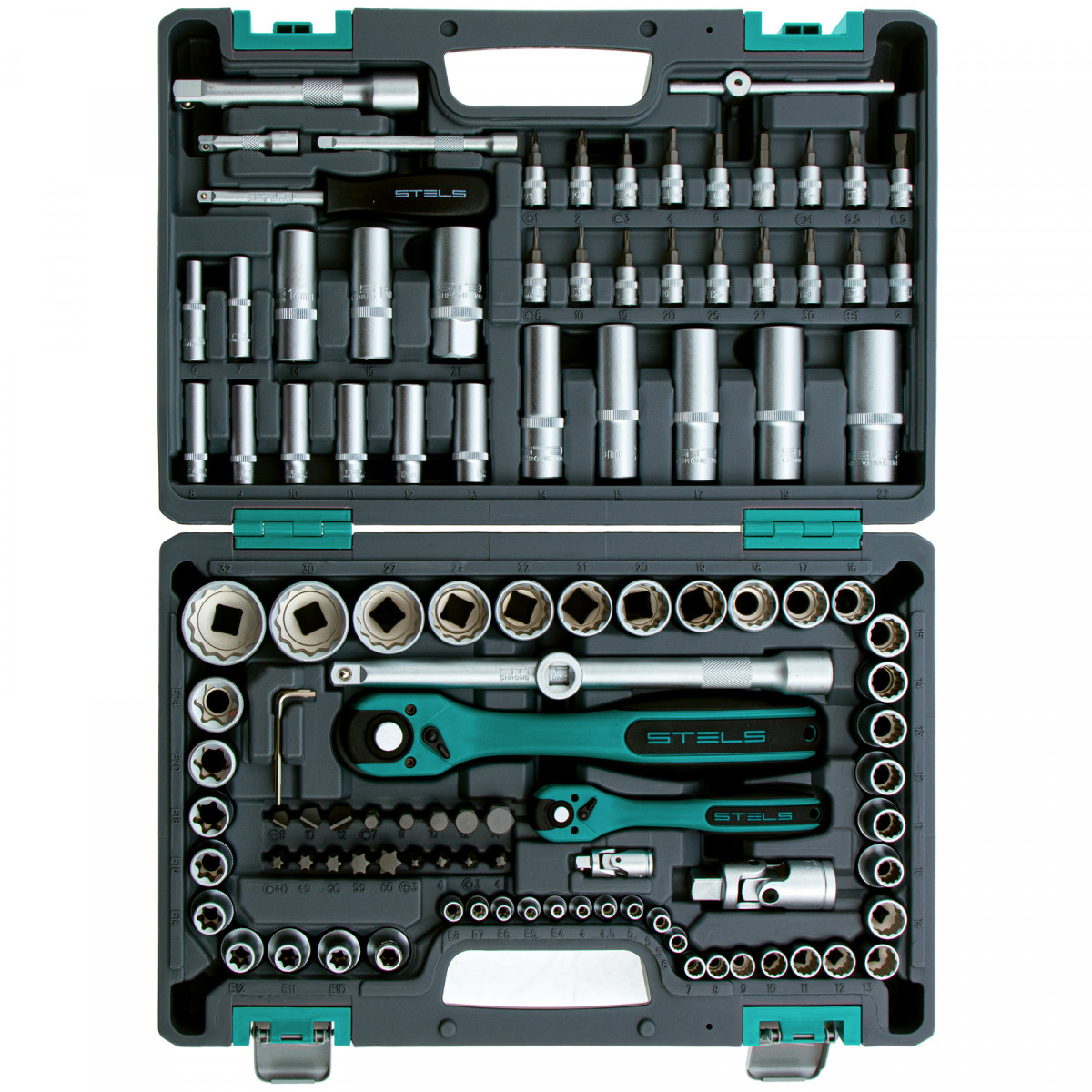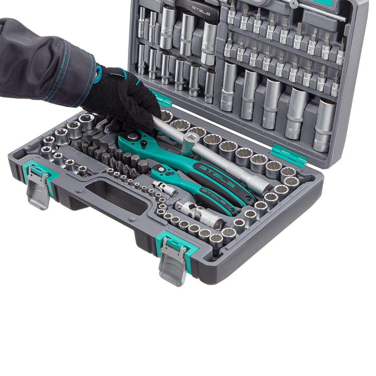 Набор инструментов Stels 14122 в ударопрочным пластиковом кейсе состоит из 109 предметов с присоединительными квадратами 1/2″ и 1/4″, из стали CrV и S2, и предназначен для выполнения слесарно-монтажных работ. Включает инструменты и насадки для работы с резьбовыми крепежами, в том числе 12-гранные торцевые головки, т-образный вороток и удлинители, облегчающие работу в труднодоступных местах. Набор предназначен для профессионального использования в автомастерской, будет полезен и для решения бытовых задач.