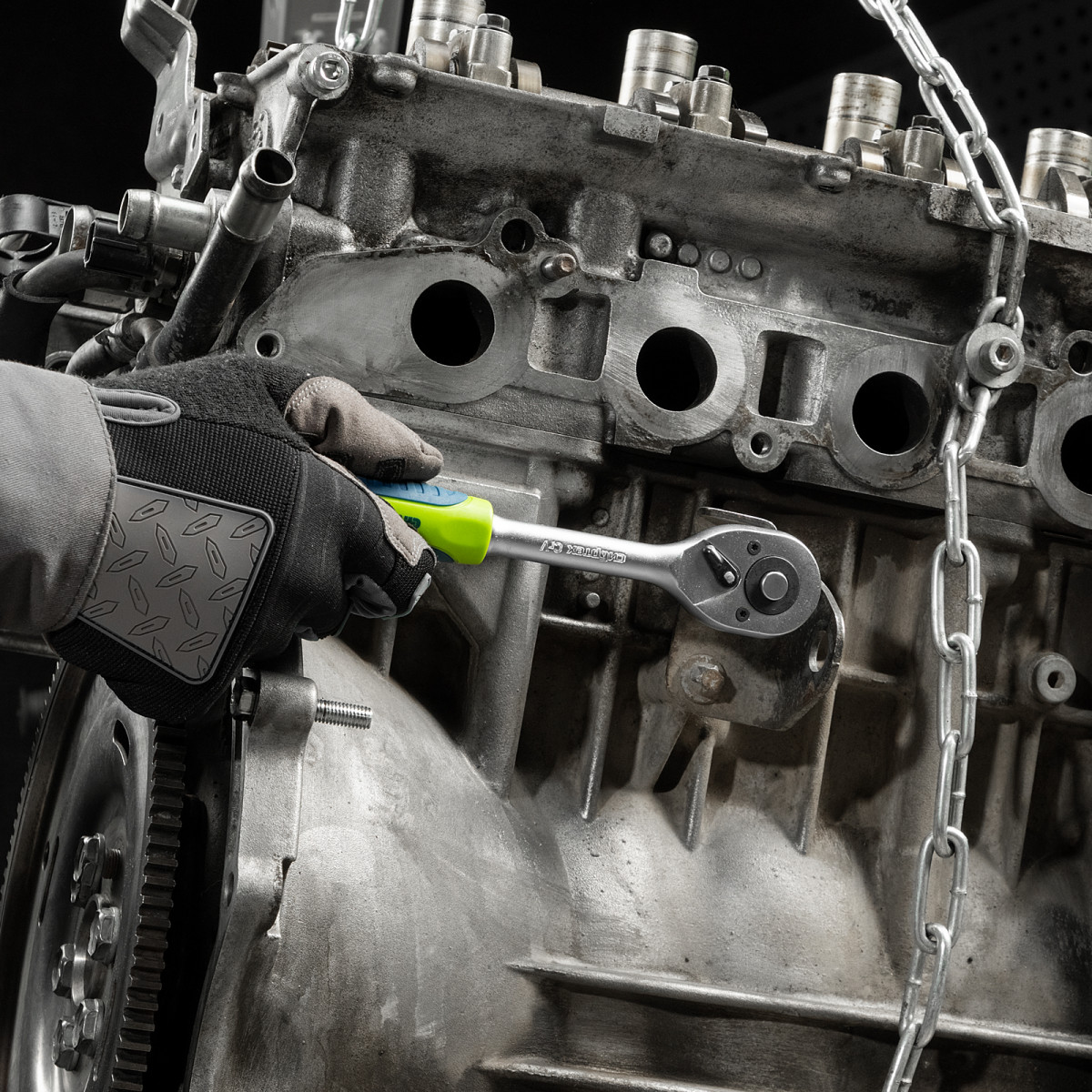 - Эргономичность — двухкомпонентные рукоятки трещоточных ключей удобно ложатся в руку.