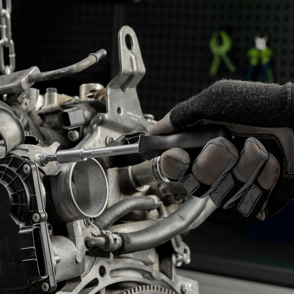 - Прочная фиксация — шариковый замок на трещотках, воротках, шарнирах и удлинителях надежно удерживает торцевые головки.