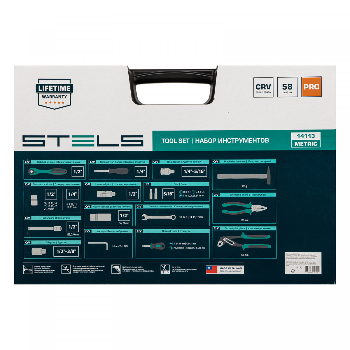 Набор инструментов, 1/2", Cr-V, S2, усиленный кейс, 58 предметов Stels