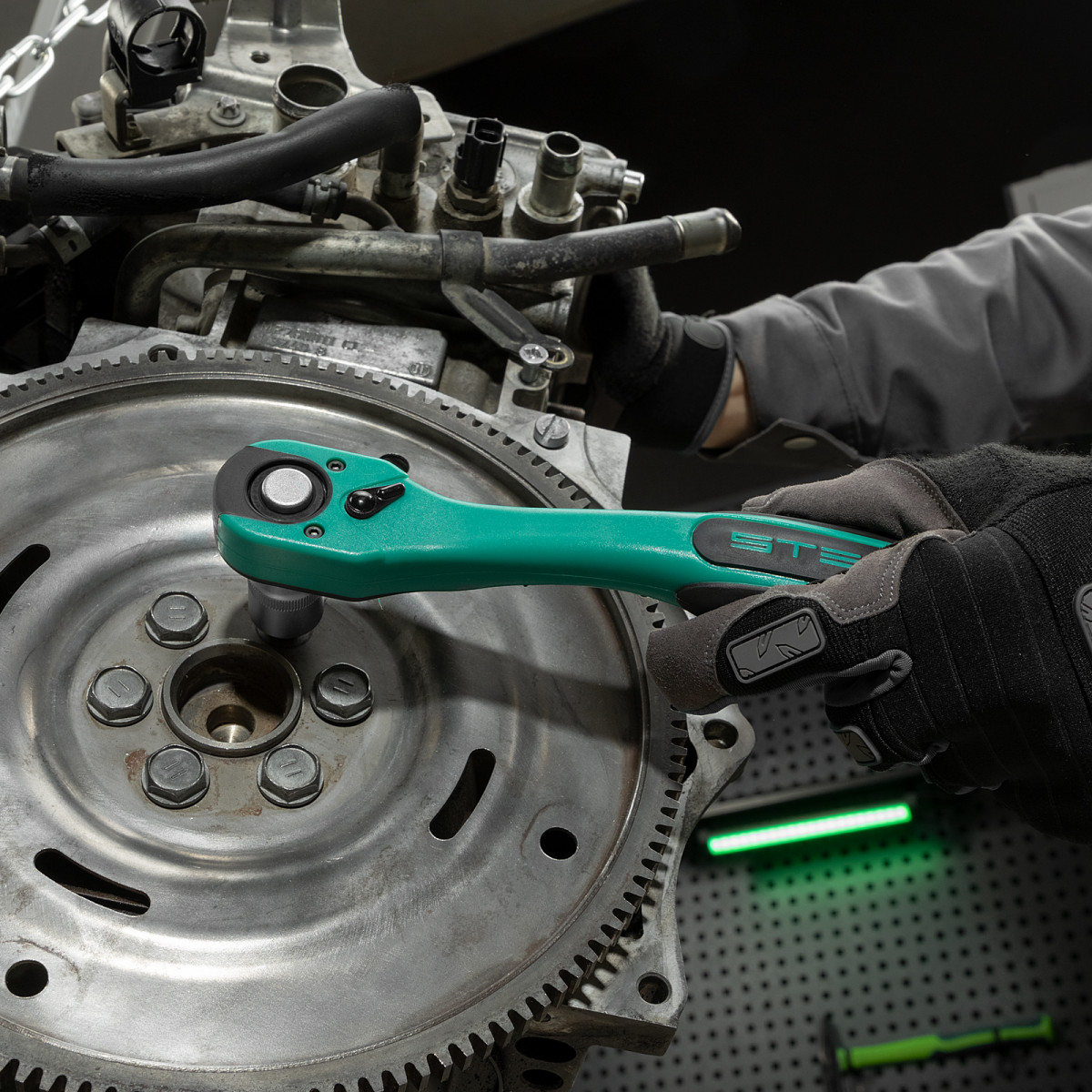 - Комфортная работа в труднодоступных местах — в набор входят ключи-трещотки с 72 зубьями, рабочий шаг составляет всего 5°.