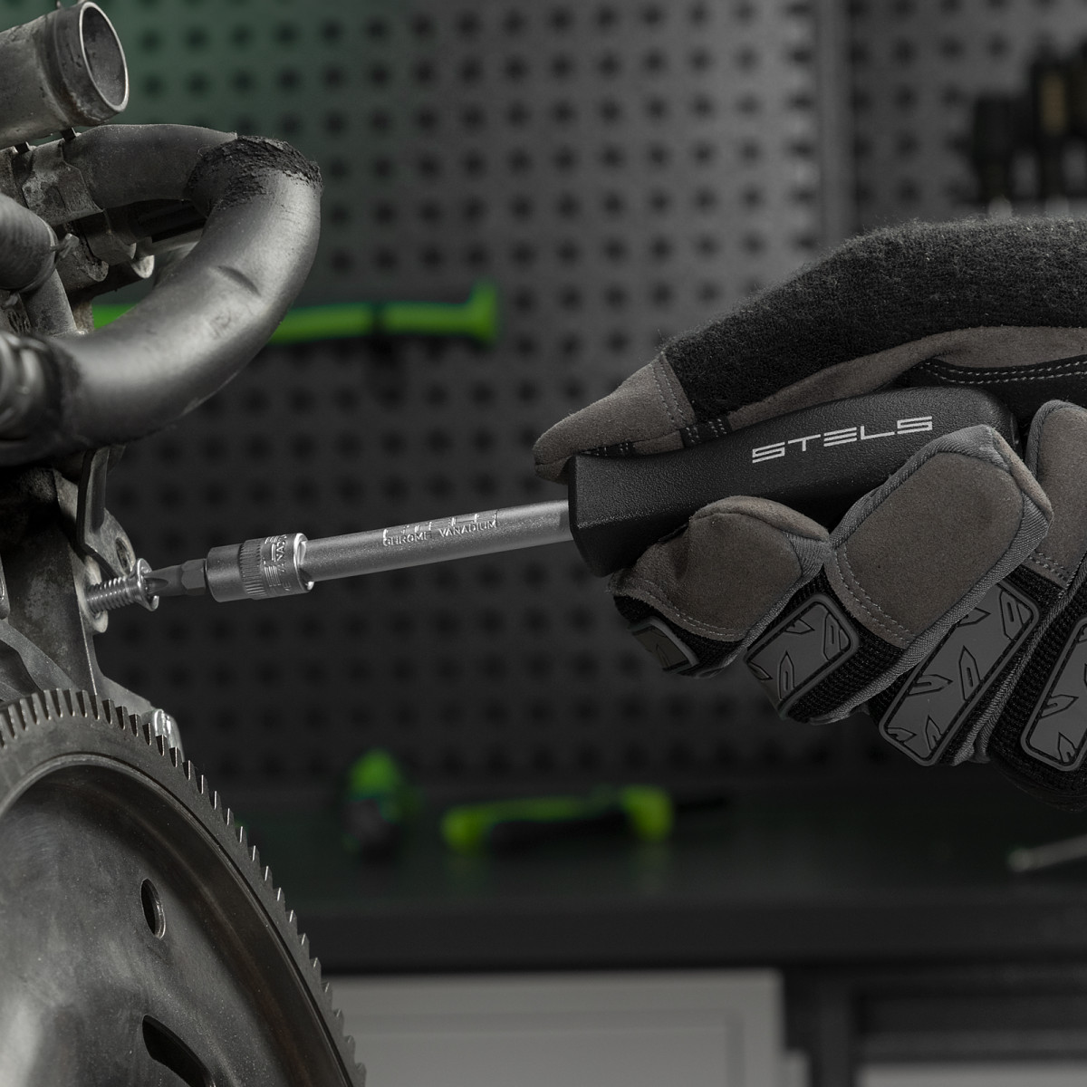 - Устойчивость к высоким нагрузкам — инструменты изготовлены из высокопрочной закаленной стали CrV, отвертки, биты и биты-вставки выполнены из японской легированной стали S2.