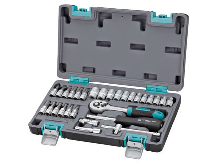 Набор инструментов STELS 29 предметов 14100 предназначен для монтажа, демонтажа резьбовых соединений, обслуживания деталей автомобиля. Комплект обладает инструментами, которые выполнены из хромованадиевой стали и обладают удобной двухкомпонентной рукояткой. Биты изготовлены из стали марки S2, благодаря которой улучшены свойства инструмента. В наборе 29 предметов. Кейс из ударопрочного пластика для хранения.