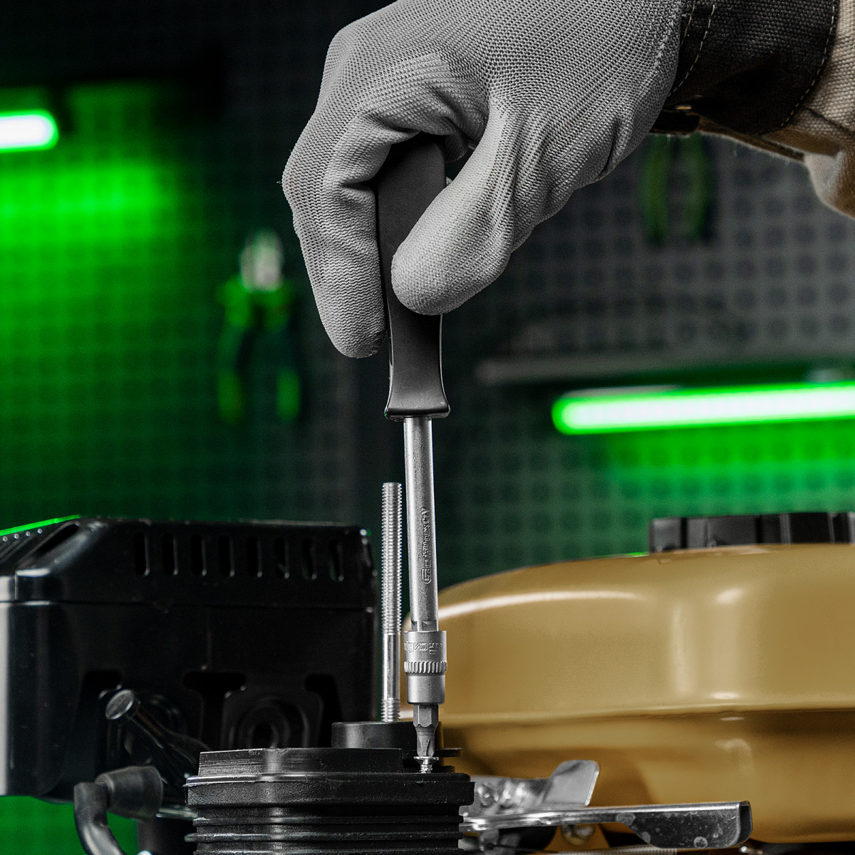• Комфортная и эффективная работа — ключи-трещотки с 45 зубьями оснащены механизмом быстрого сброса, переключателем реверса с металлическим флажком и двухкомпонентной рукояткой.