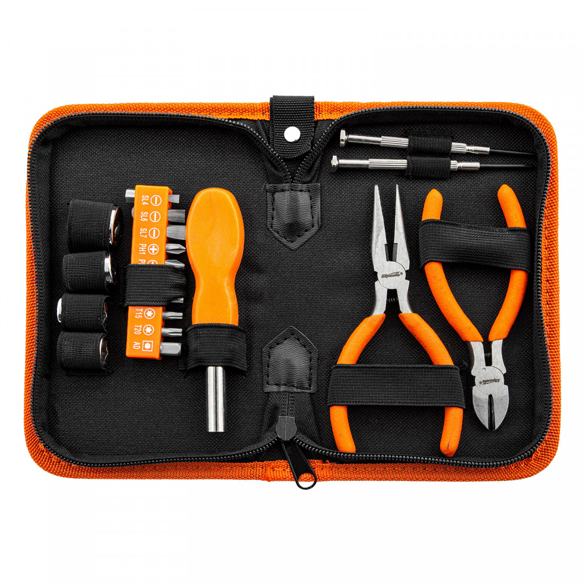 Набор Sparta 13546, 19 предметов, пригодится при выполнении слесарно-монтажных работ. Он будет полезен в хозяйстве для частных мастеров. В наборе есть отвертки для точных работ, отвертка для бит, биты и торцевые головки для монтажа/демонтажа крепежных элементов, бокорезы и длинногубцы для захвата, удержания и перекусывания проводов и мелких деталей.