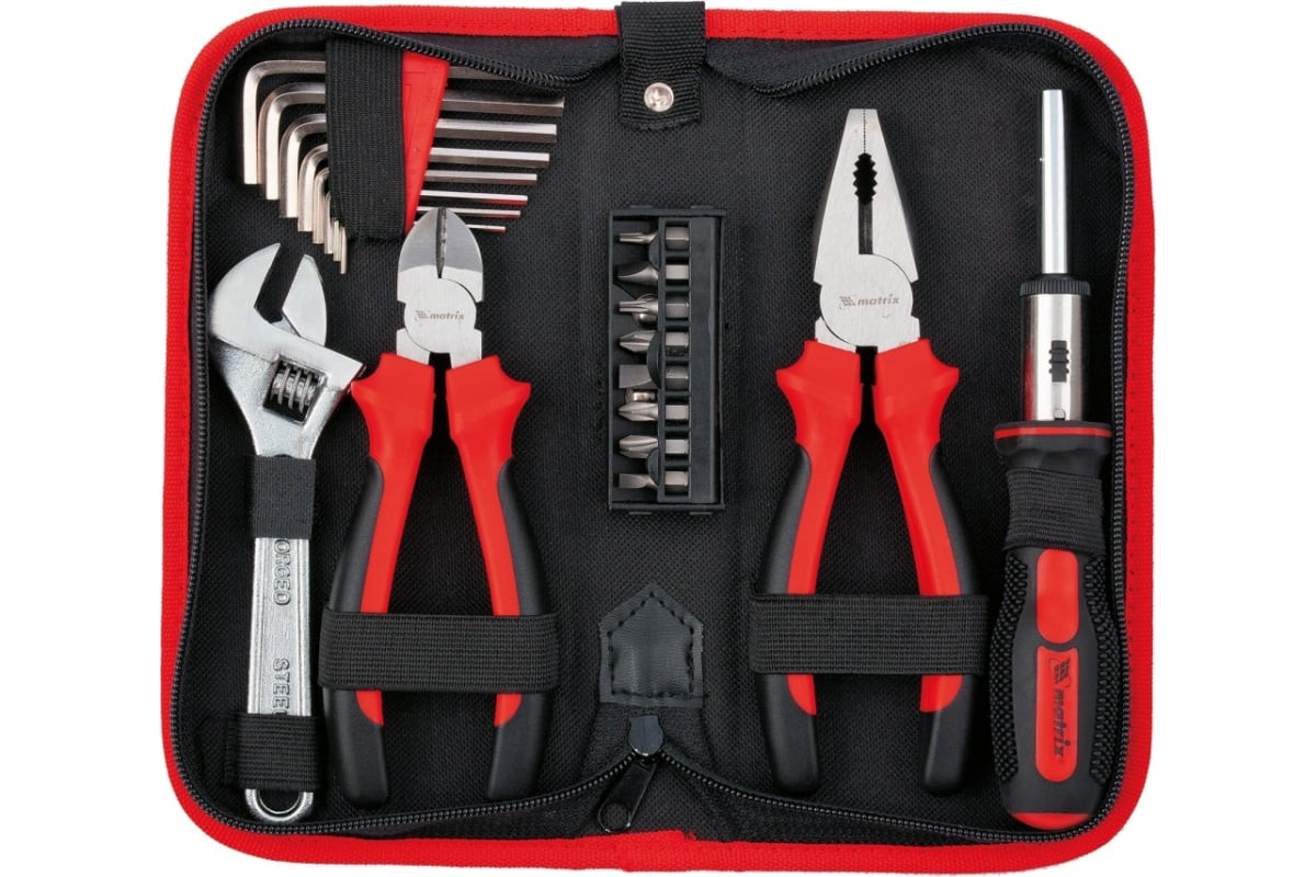 Слесарно-монтажный набор предмета, оптимально подходит для бытового и профессионального использования. Универсальный набор содержит ключи-шестигранники для удобства работы в труднодоступных местах, разводной ключ для монтажа/демонтажа болтов и гаек, реверсивную отвертку с битами и переходником для работы с крепежными элементами, бокорезы и плоскогубцы для зажима и сгибания заготовок.