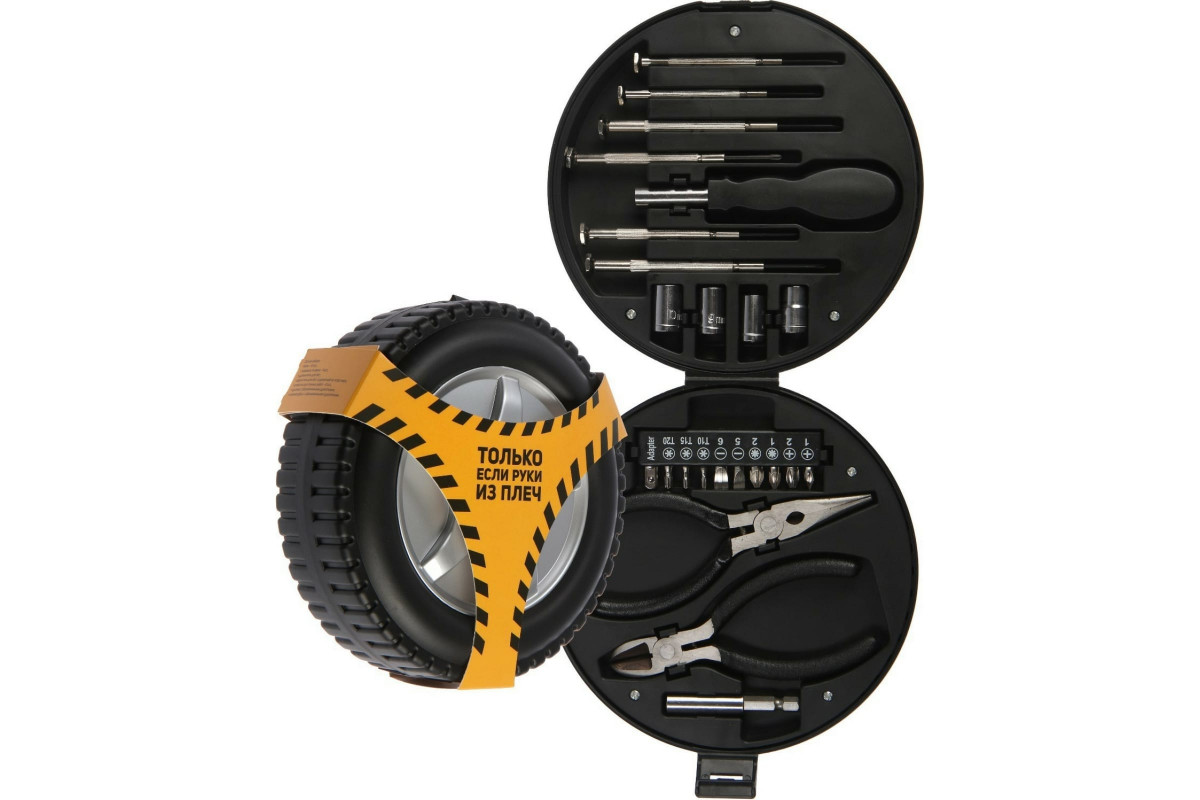 Набор инструментов ТУНДРА, подарочный пластиковый кейс "Колесо", 24 предмета