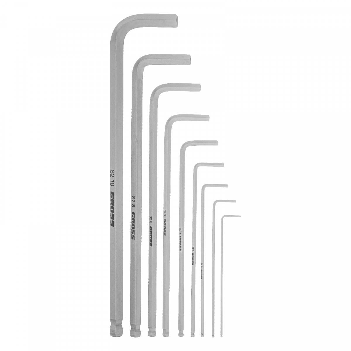 Набор ключей имбусовых HEX, 1.5-10 мм, S2, 9 шт, экстра-длинные с шаром, сатинированные Gross