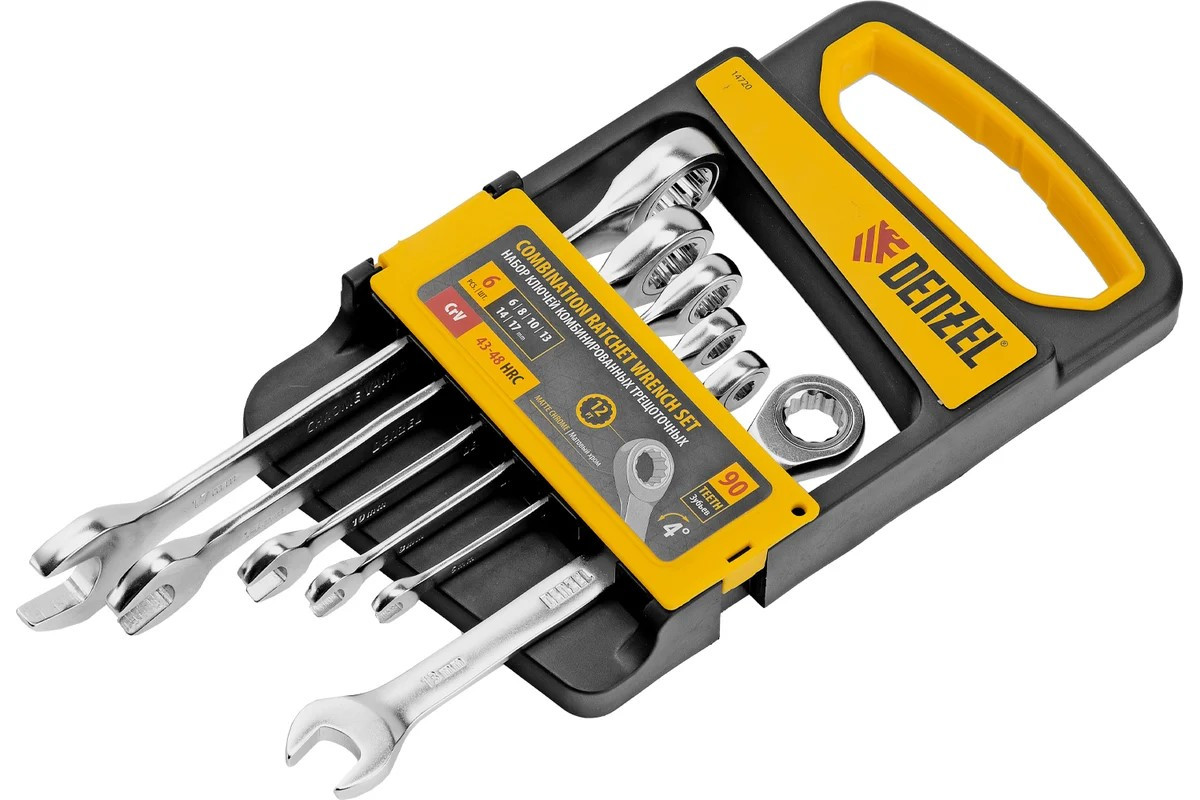 Набор ключей комбинированных 6-17 мм 6 шт CrV матовый хром DENZEL