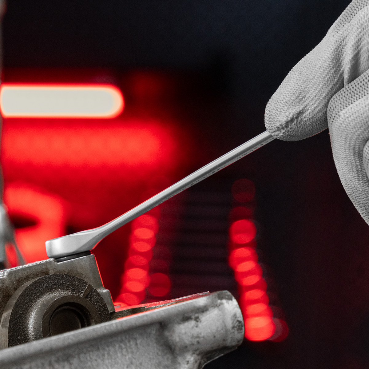 - Аккуратная работа — накидные части с 12-гранным профилем охватывают всю поверхность крепежа, уменьшая риск деформации его граней.