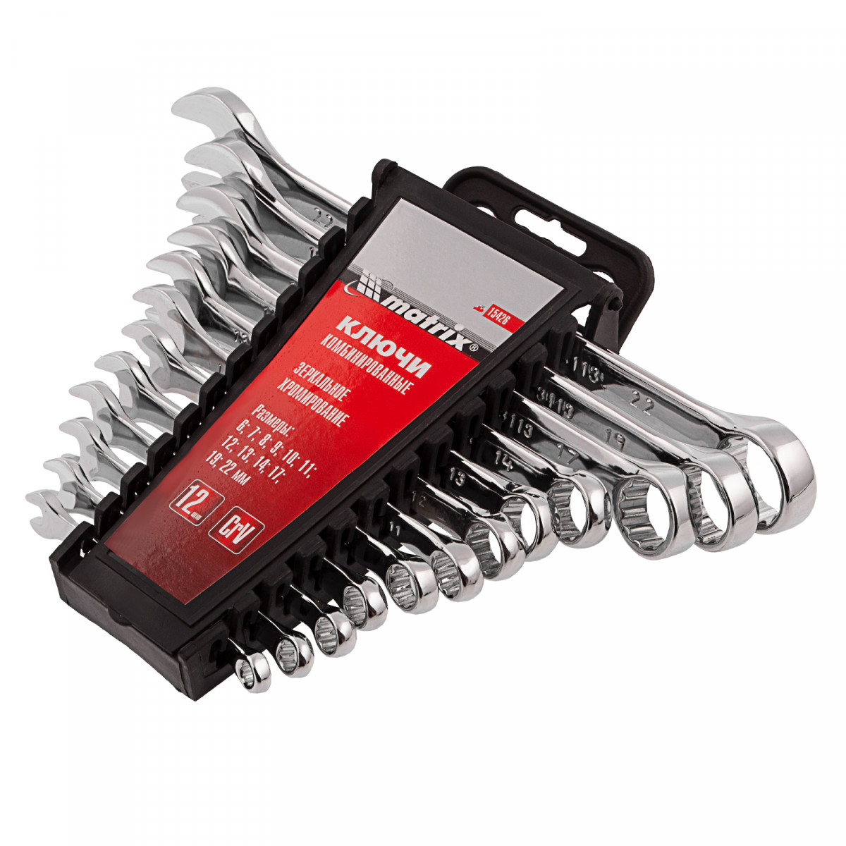 Набор ключей комбинированных, 6-22 мм, 12 шт, CrV, полированный хром Matrix