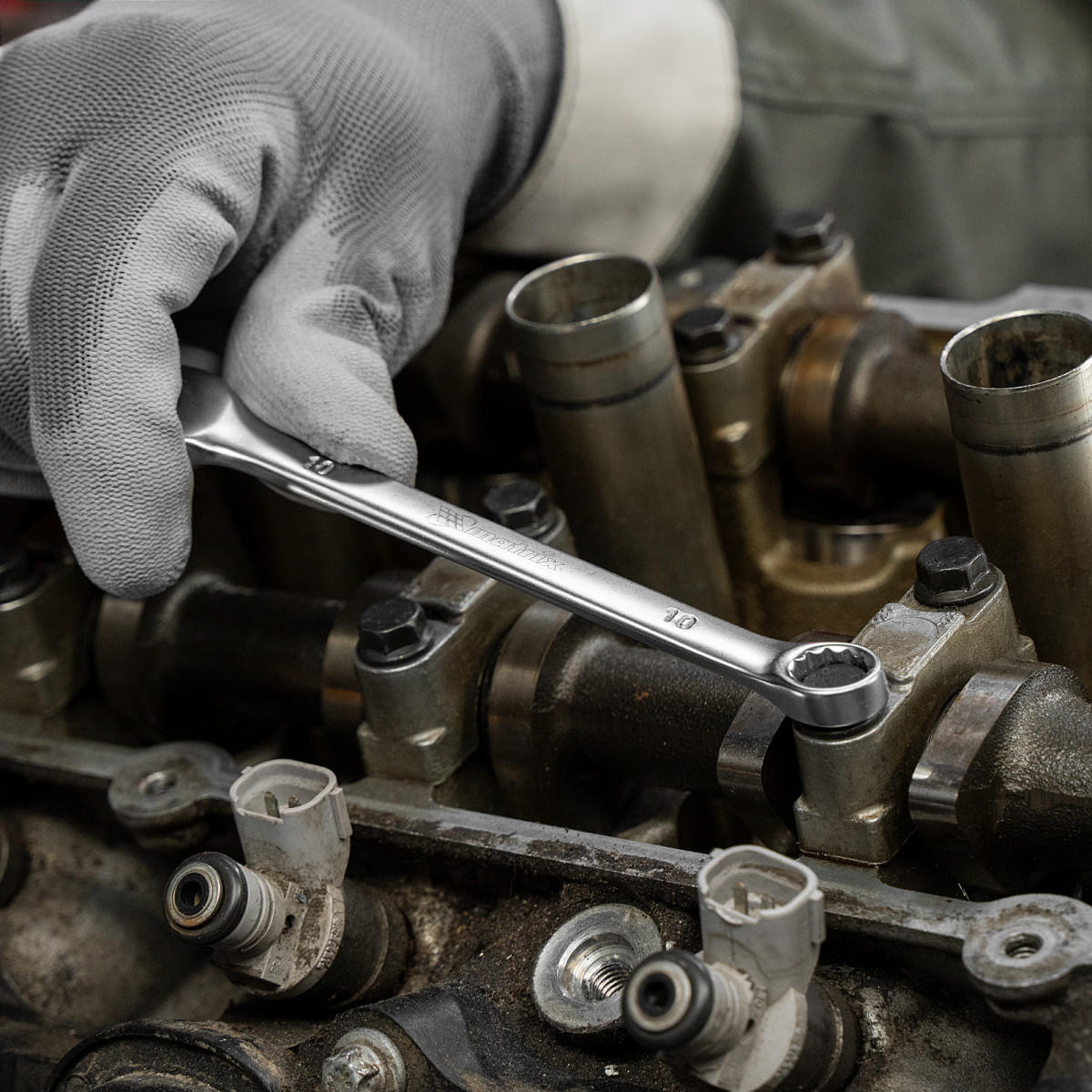 • Аккуратная работа — накидные части с 12-гранным профилем охватывают всю поверхность крепежа, уменьшая риск деформации его граней.