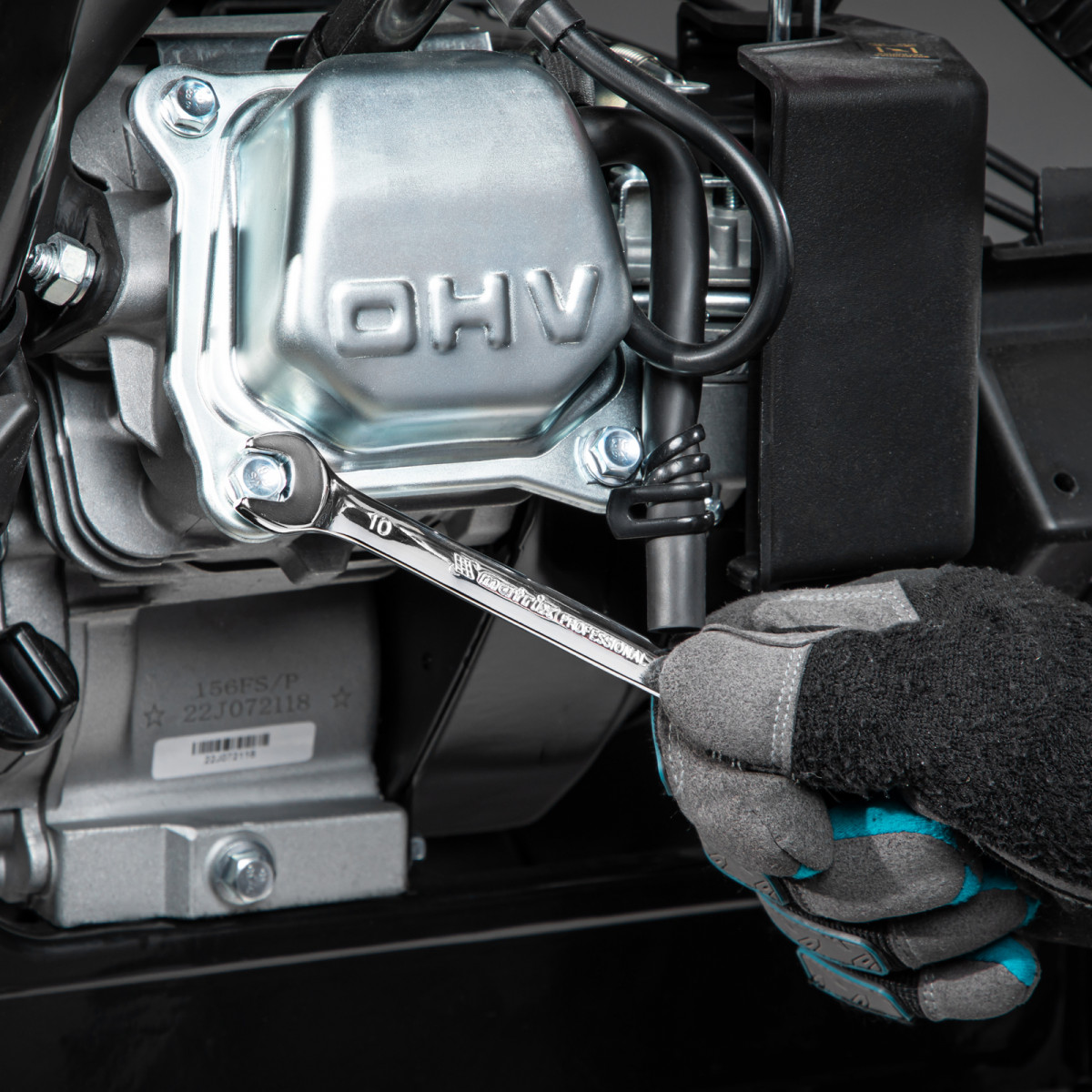 - Эффективная работа — 12-гранный профиль накидной части ключа плотно охватывает поверхность крепежа, предотвращая деформацию его граней.