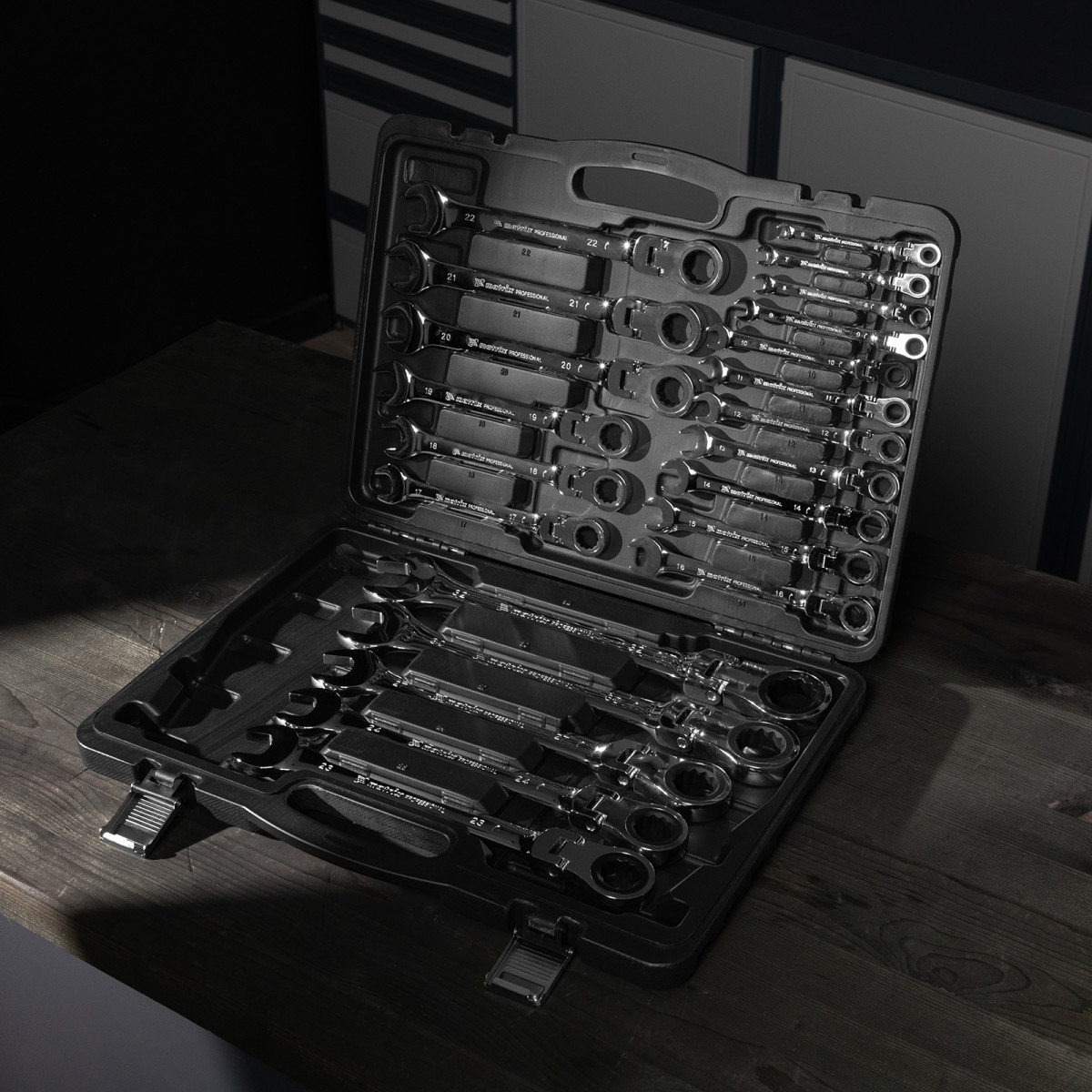 Набор ключей комбинированных, трещоточных шарнирных 22 шт. Matrix