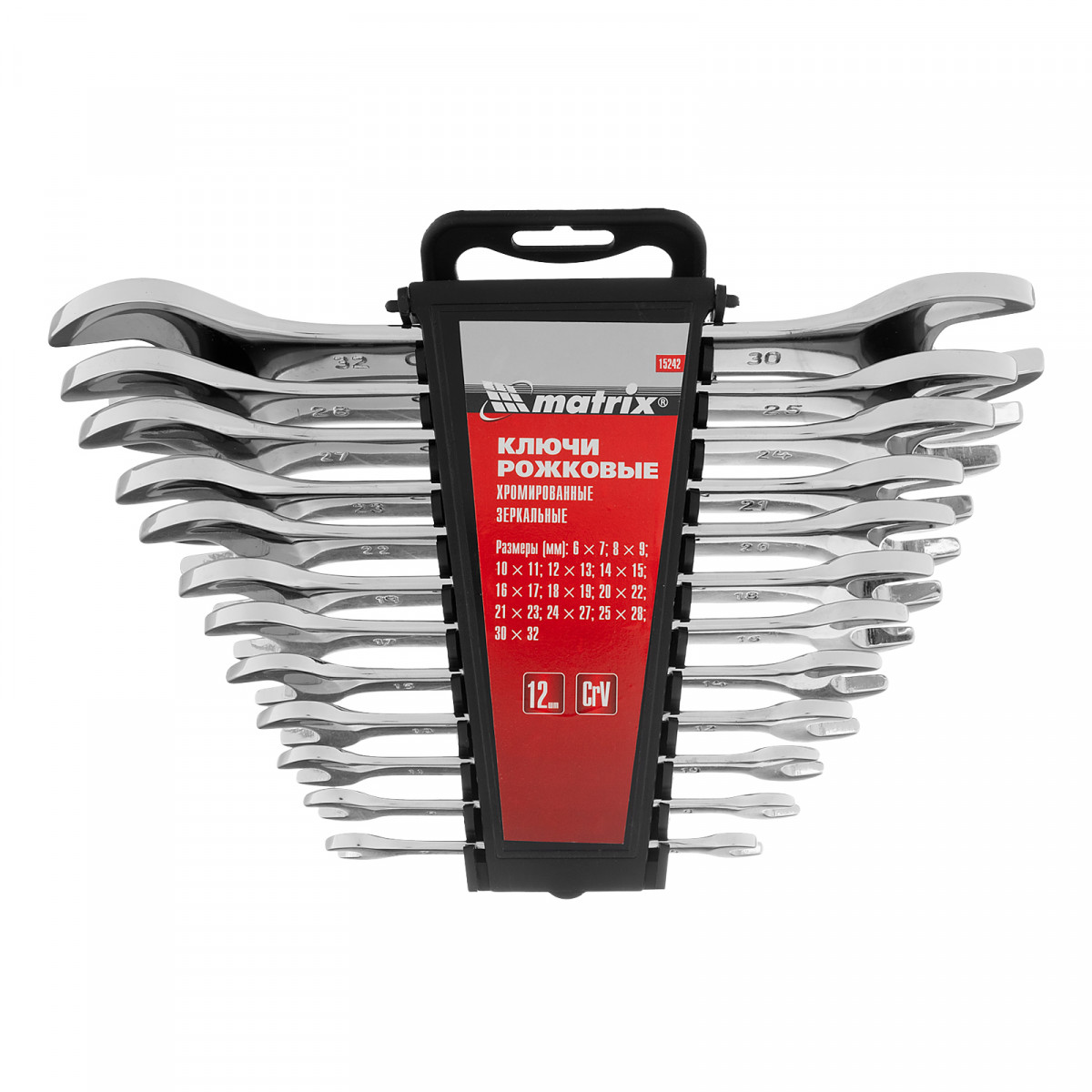 Набор ключей рожковых 12 шт, (6-32мм) CrV, EllipticaL зеркальное хромирование Matrix