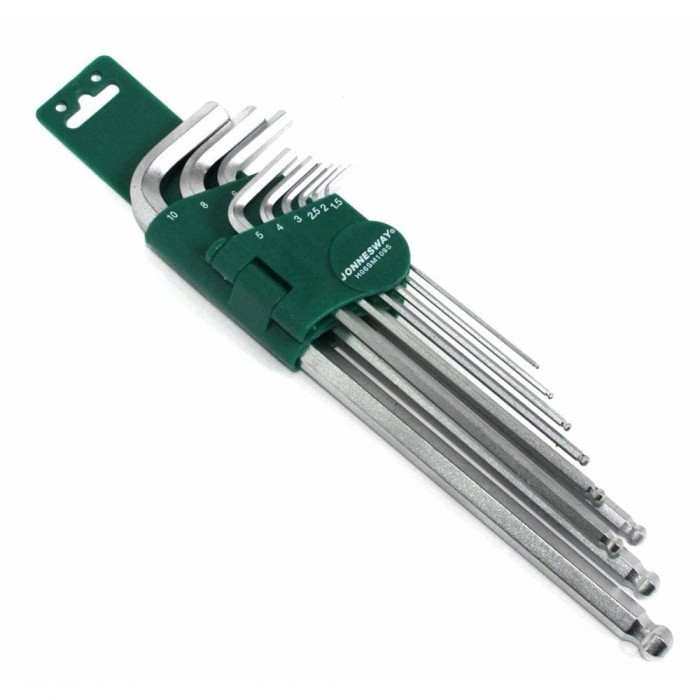 Набор ключей торцевых шестигранных удлиненных с шаром для изношенного крепежа, 9 пр. Jonnesway H23S109S 49338 предназначен для работ с резьбовыми соединениями.