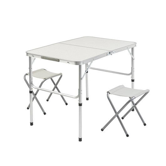 Комплект складной мебели для двух персон, включающий складной стол и 2 стульчика. Оптимальный вариант для организации пикников, выездов на дачу, охоту или рыбалку - стулья размещаются внутри стола, который убирается в специальный чемодан.