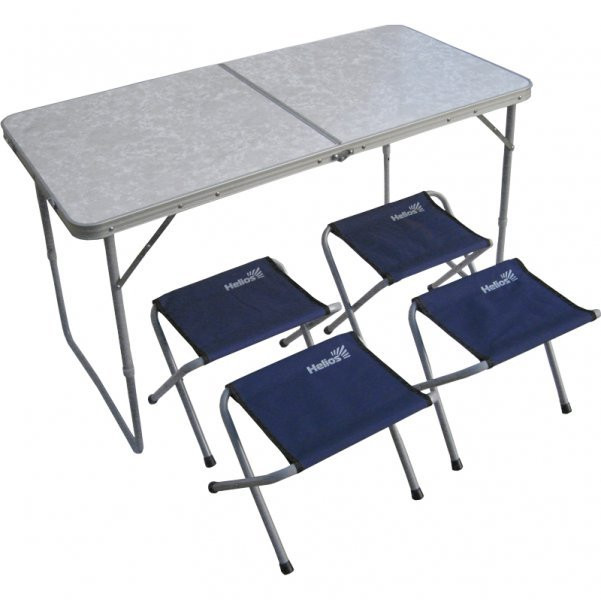 Набор мебели (стол и 4 табурета) - отличное решение для выезда на природу. Табуреты складываются внутрь стола, что существенно экономит место при транспортировке. Чехол с ручками для хранения и переноски набора мебели.