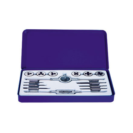 Набор включает в себя метчики и лерки различных размеров, что обеспечивает широкий диапазон нарезания резьбы.