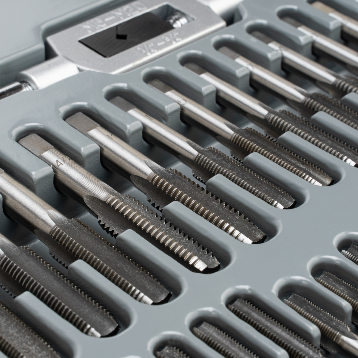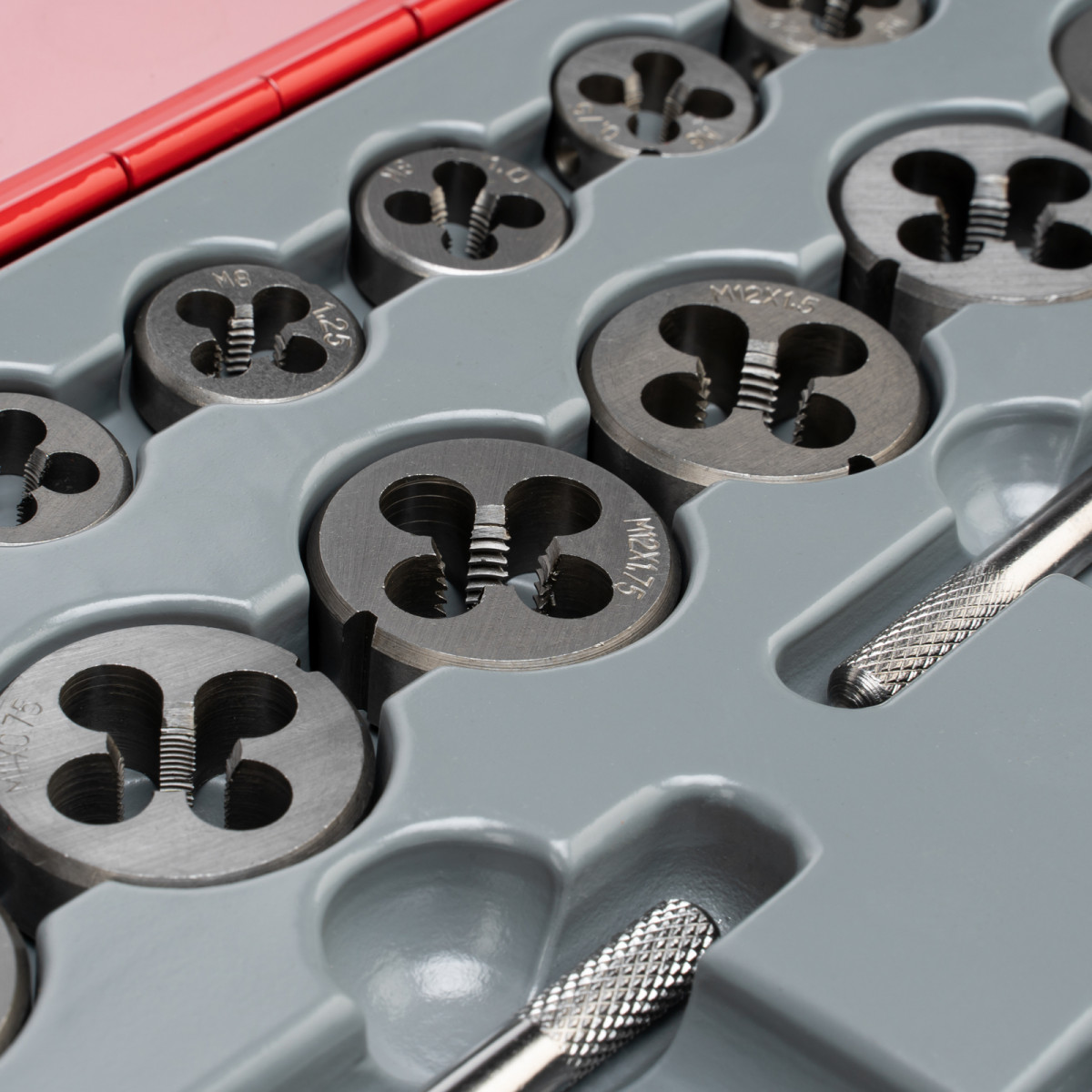 • Быстрый поиск нужного инструмента — на каждый предмет нанесено обозначение размера и шага резьбы.