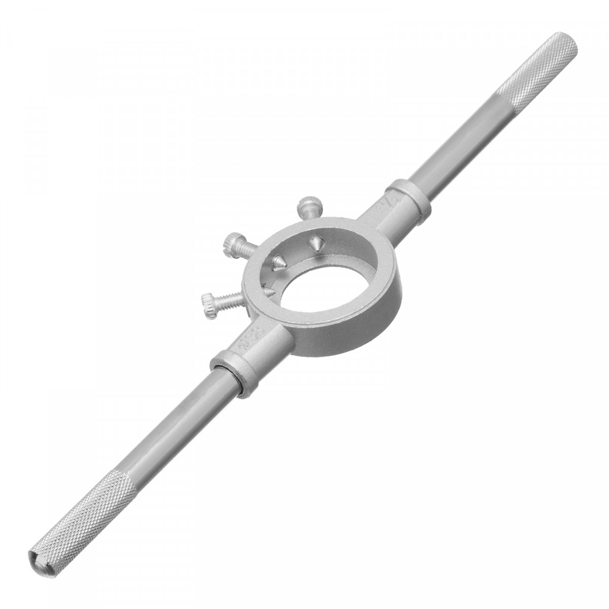 - Комфортная и эффективная работа — плашку удерживают в держателе боковые винты, метчик крепко фиксируется в воротке посредством регулируемого винтового механизма.
