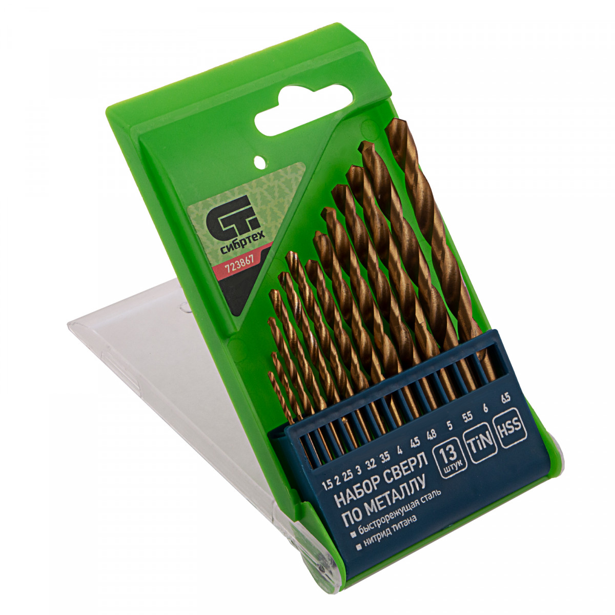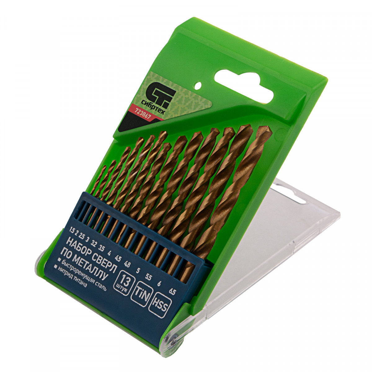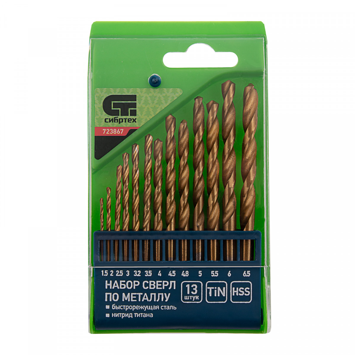 Набор сверл по металлу Сибртех 723867 с нитридтитановым покрытием, диаметром 1,5-6,5 мм (через 0,5 мм, +3,2 мм, 4,8 мм), из стали HSS, состоит из 13 шт. и предназначен для получения отверстий в заготовках из черных металлов — стали, чугуна. Включает оснастку самых востребованных размеров, будет полезен во время проведения ремонтных работ, а также дома, на даче или в гараже.