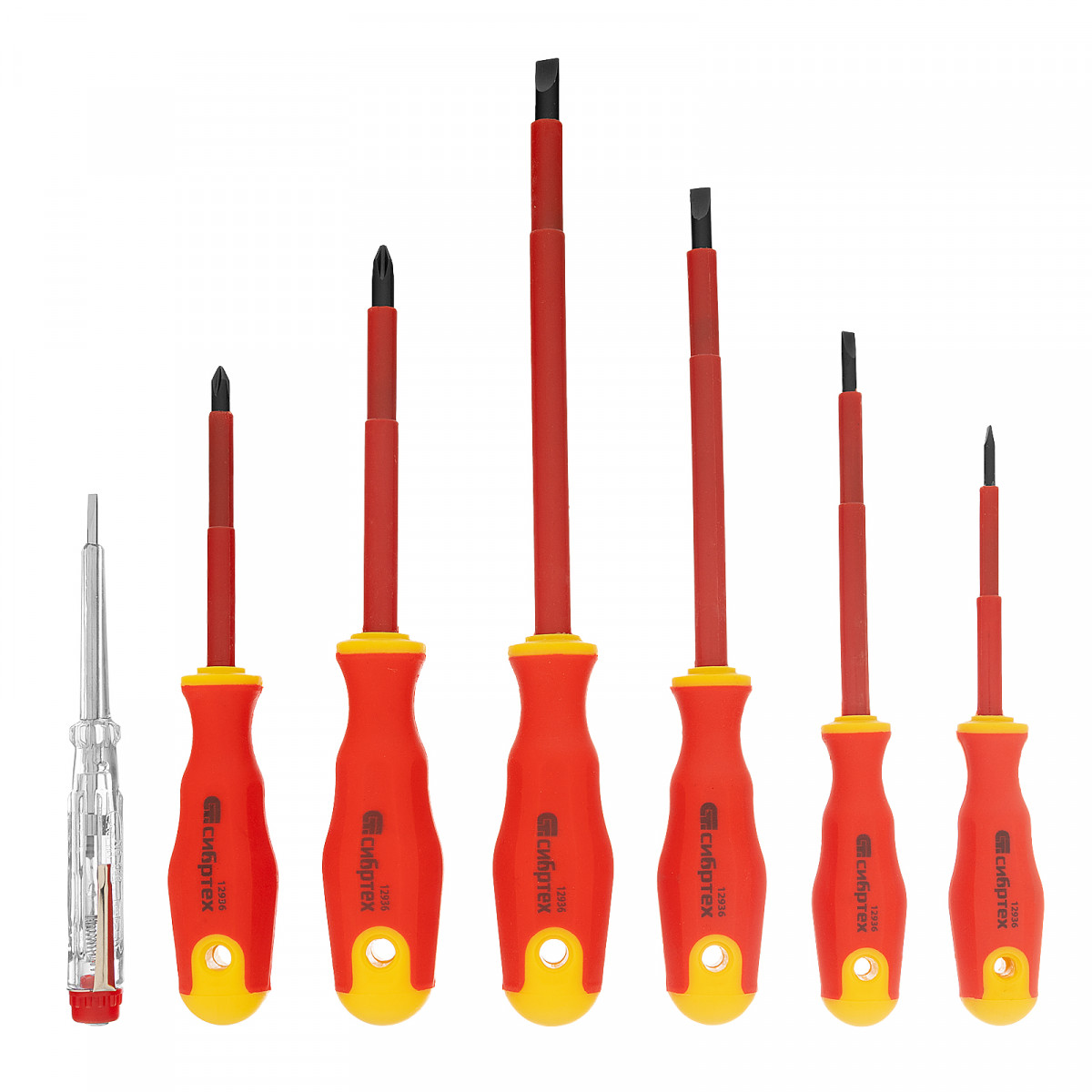 Набор отверток диэлектрических до 1000 В, 7 шт, тестер, CrV, двухкомпонентные рукоятки Сибртех