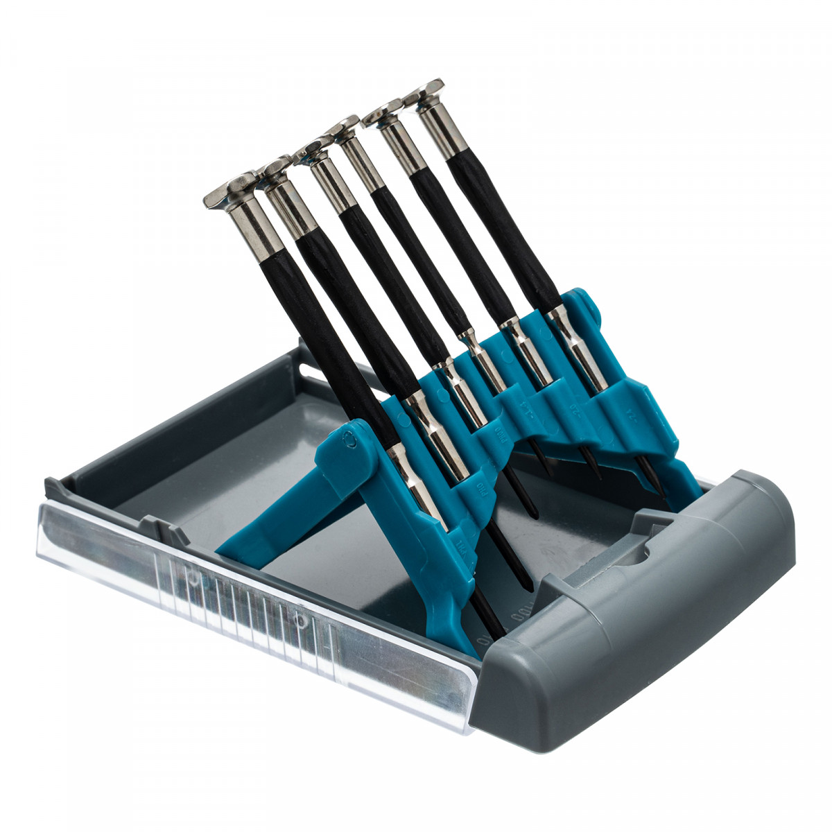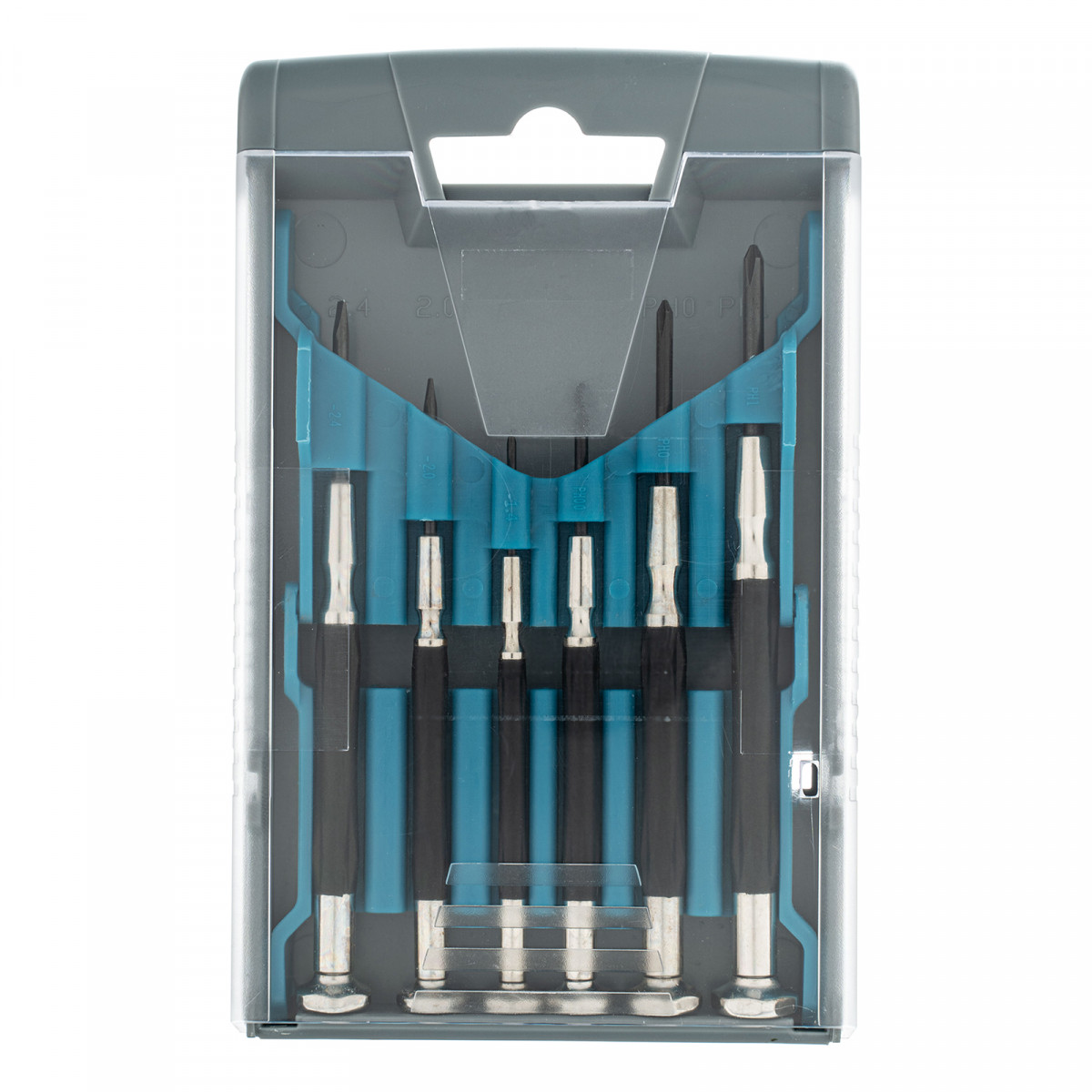 Отвертки для точных работ:РН1, РН0, РН00, SL1.4, SL2, SL2.4 - 6 штПластиковый кейс - 1 шт