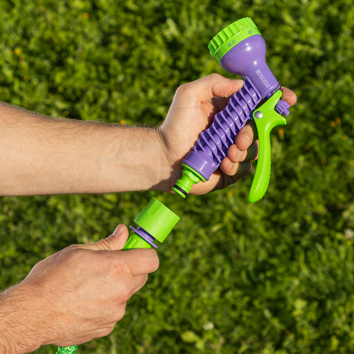 • Выбор оптимального режима полива — регулируемое сопло позволяет менять тип и мощность струи.