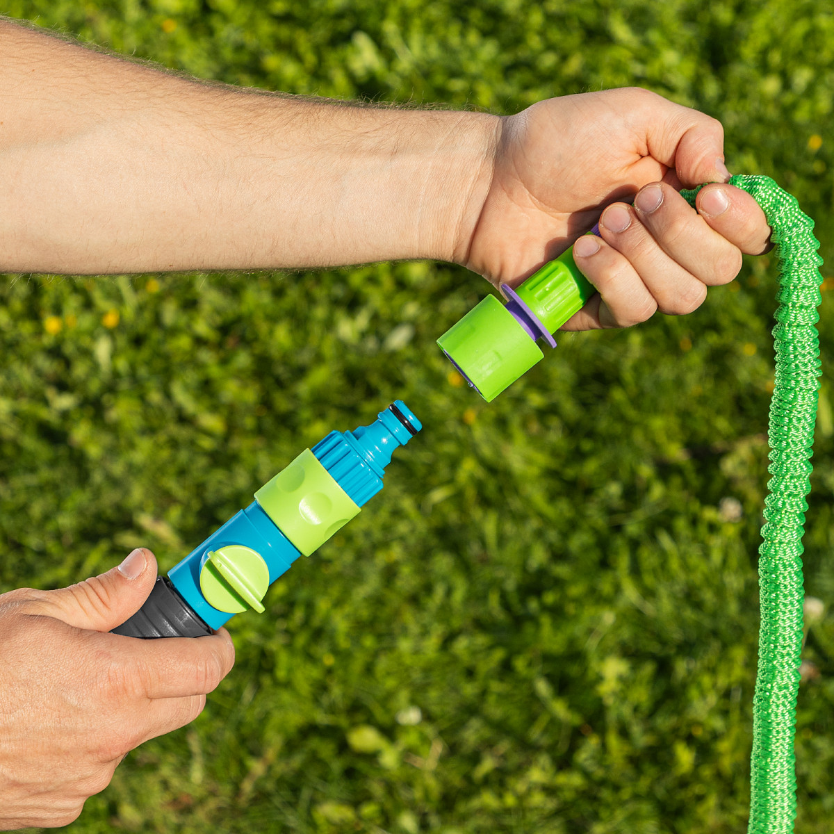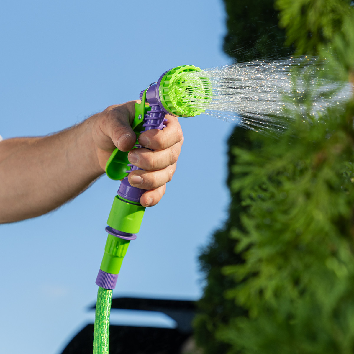 • Охват значительной площади полива — в растянутом состоянии длина шланга достигает 15 м.