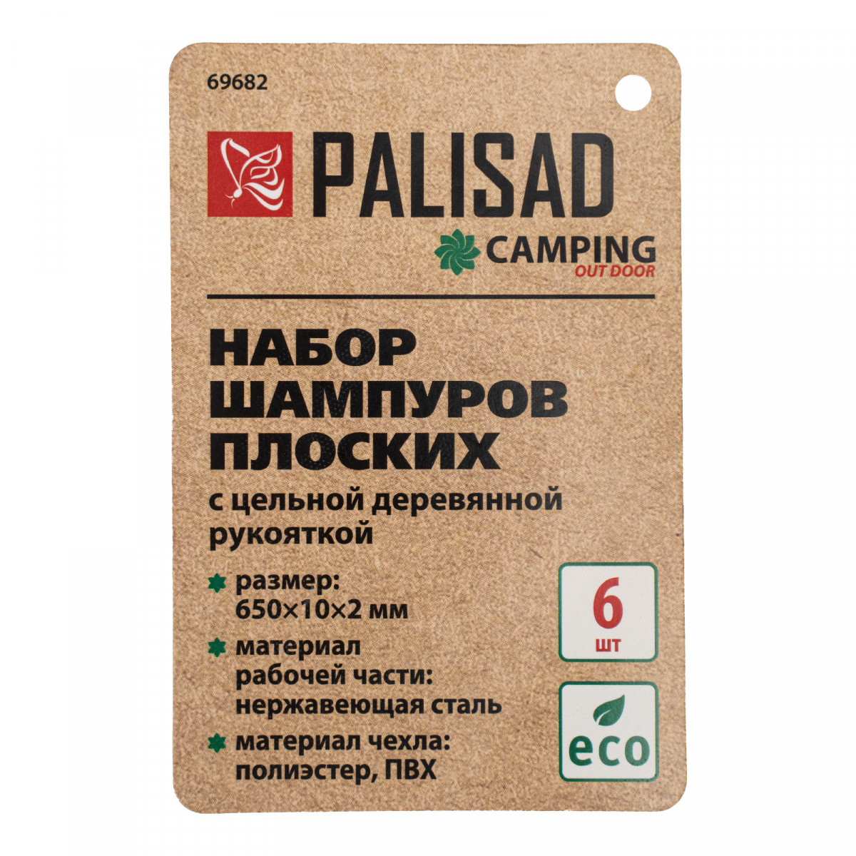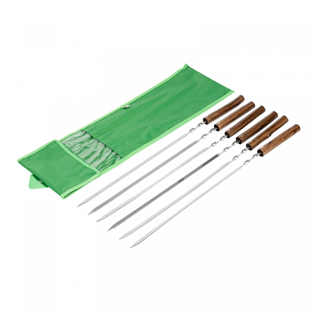 Набор шампуров плоских, 650 мм, с цельной деревянной рукояткой, в чехле, 6 шт, Camping Palisad