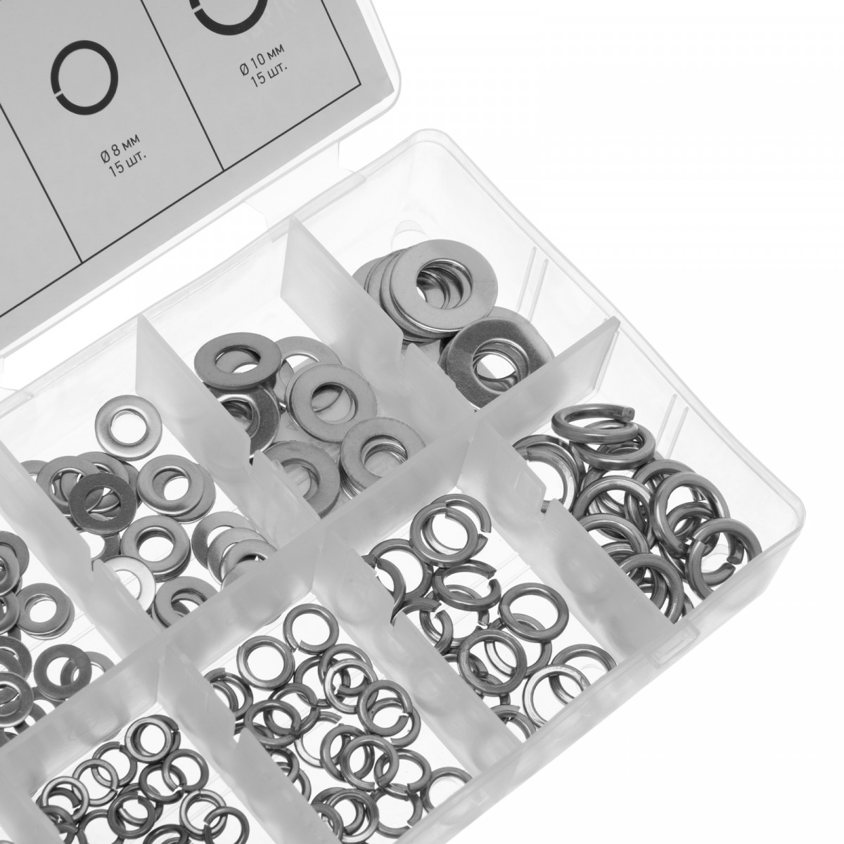 • Широкие возможности применения — в набор входят шайбы самых популярных размеров.