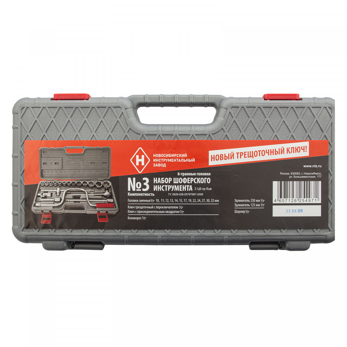 Набор шоферского инструмента № 3 НИЗ 13451 в пластиковом боксе используется для ремонта автомобиля и станет незаменимым помощником в дороге и гараже. В комплект входят инструменты, применяемые при монтаже и демонтаже резьбовых крепежей, а также торцевые головки на 10, 11, 12, 13, 14, 17, 19 мм.