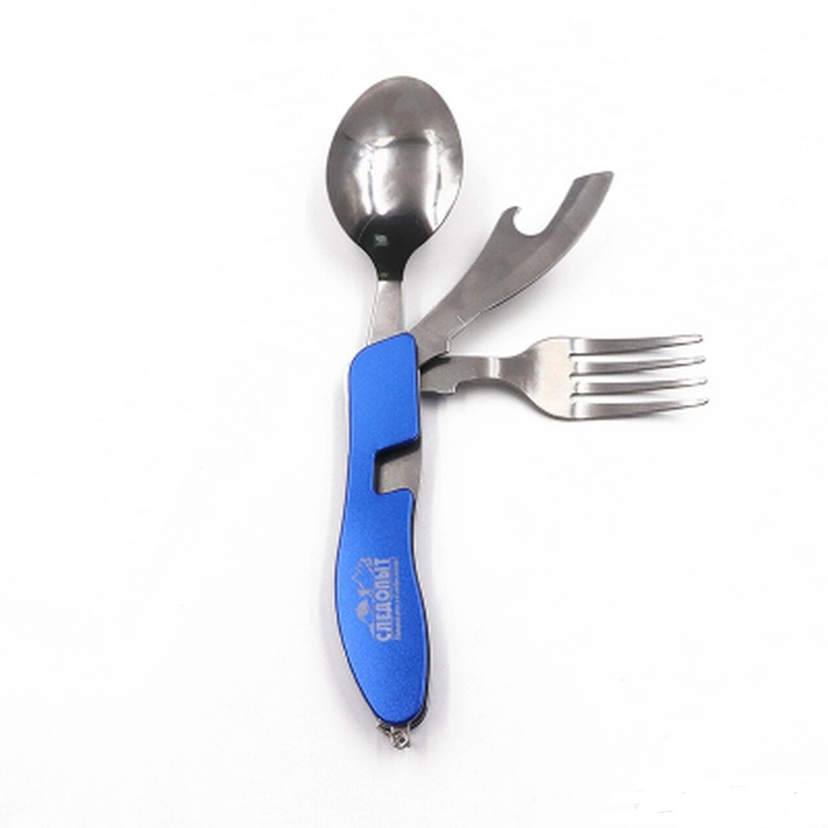 Вес: 126 г. Размеры в походном положении: 115 х 50 х 35 мм. Набор столовых приборов ключает: ложка, вилка, открывашка.
