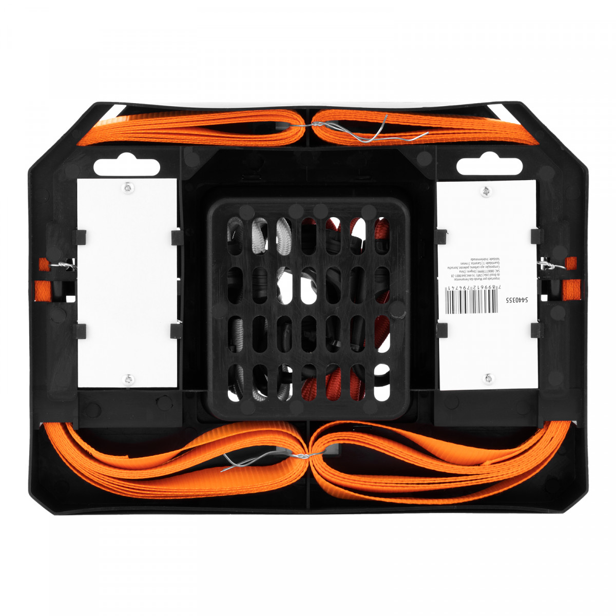 • Износостойкость — ремни изготовлены из прочного полиэстера, а эластичные стяжки — из высококачественной резины.