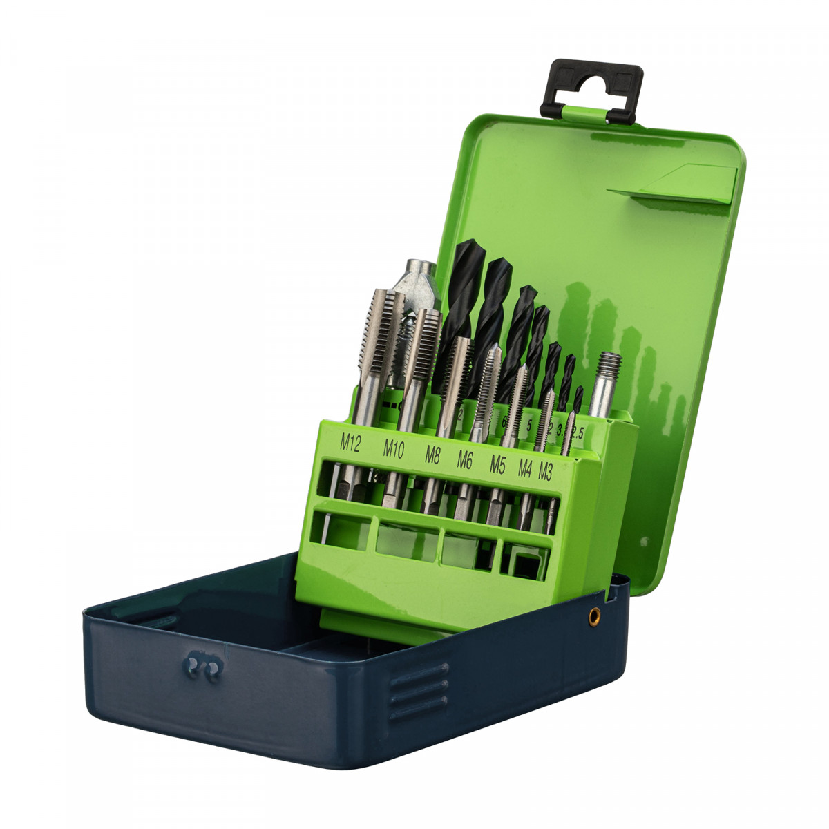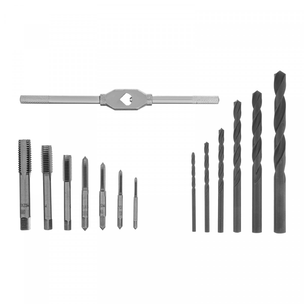 Набор Сибртех 77305 включает 15 предметов — метчики размером М3-М12, сверла диаметром 2,5-10,2 мм и метчикодержатель. В комплекте имеется все необходимое для создания сквозных и глухих отверстий, а также для ручной нарезки в них внутренней резьбы диаметром от М3 до М12. Инструменты подходят для обработки деталей из сталей и цветных металлов. Диаметр сверл подобран под размер метчиков. Набор будет полезен на производстве, в автосервисе, пригодится также в быту.
