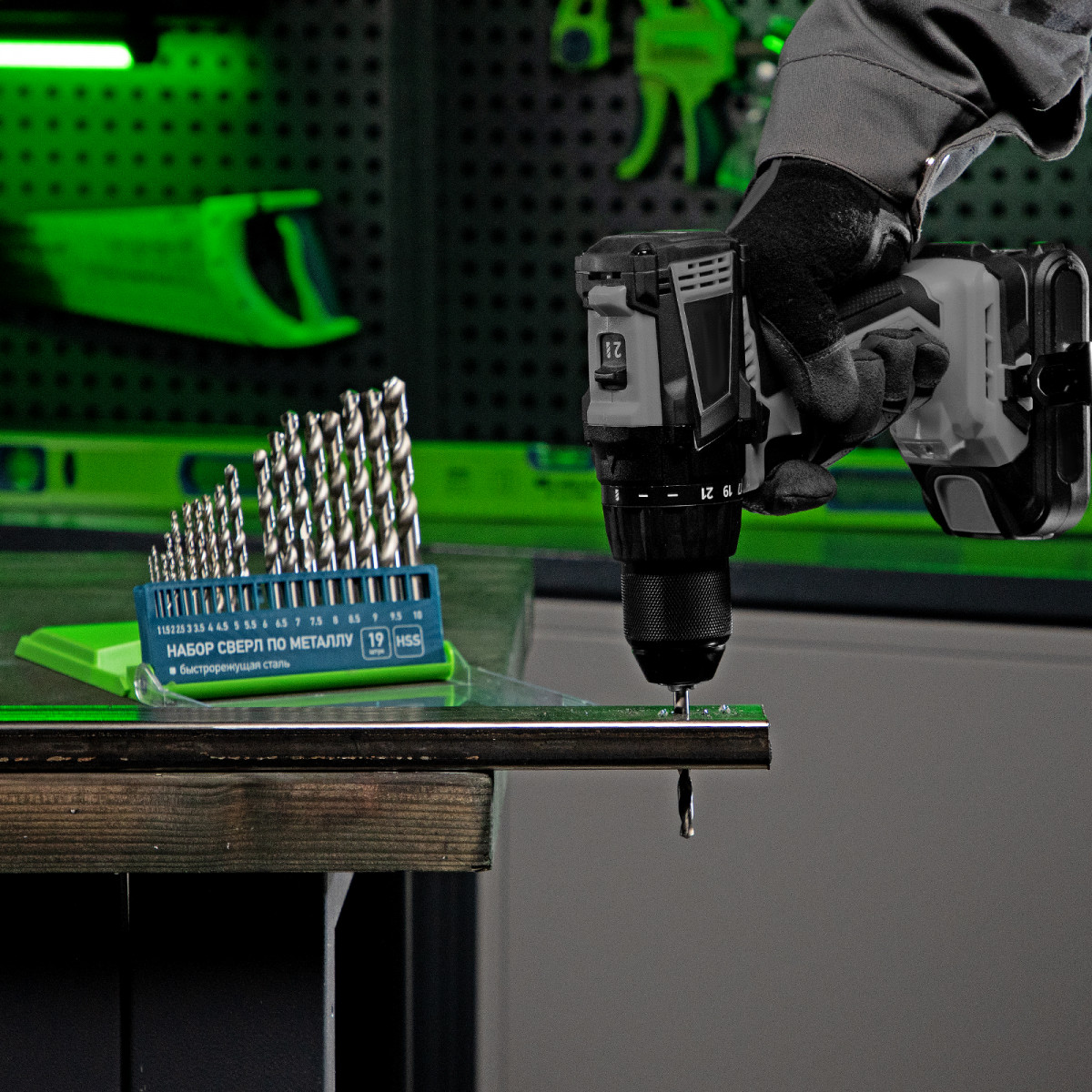 Набор сверл по металлу, 1-10 мм, (через 0.5 мм) HSS 19 шт, пластиковая коробка, цилиндрический хвостовик Сибртех