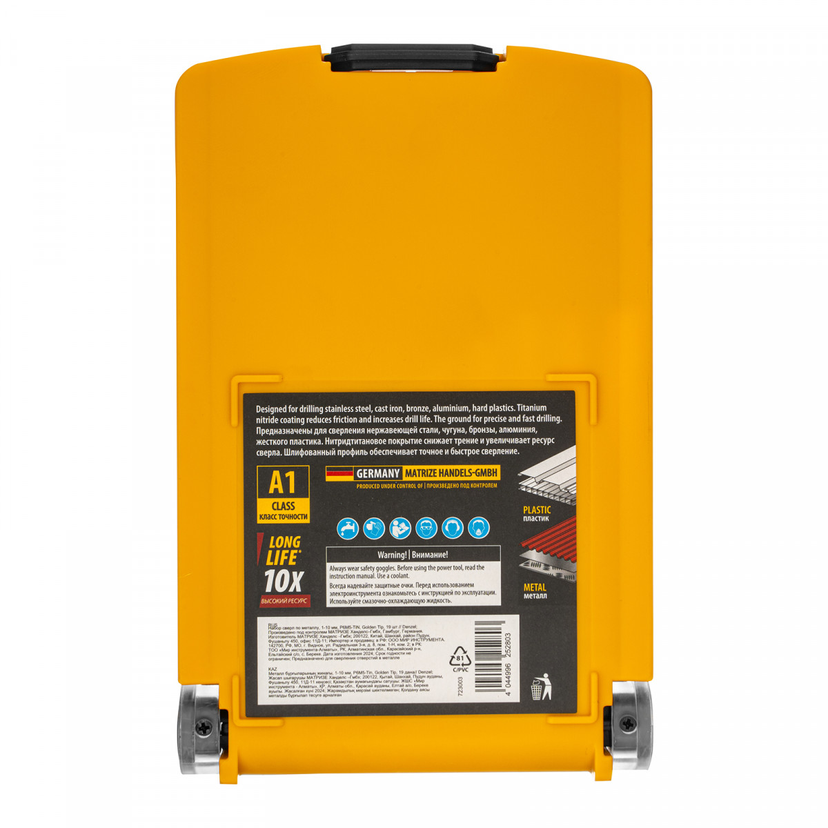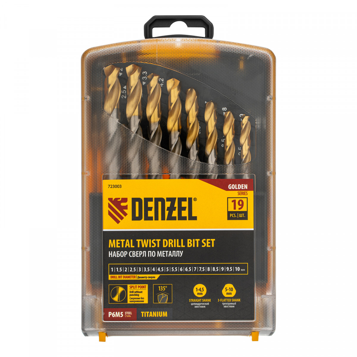 Набор сверл по металлу, 1-10 мм, Р6М5-TiN, Golden Tip, 19 шт Denzel