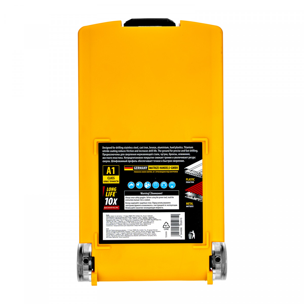 - Удобная упаковка — сверла поставляются в пластиковом кейсе с шаблоном для определения диаметра сверл.